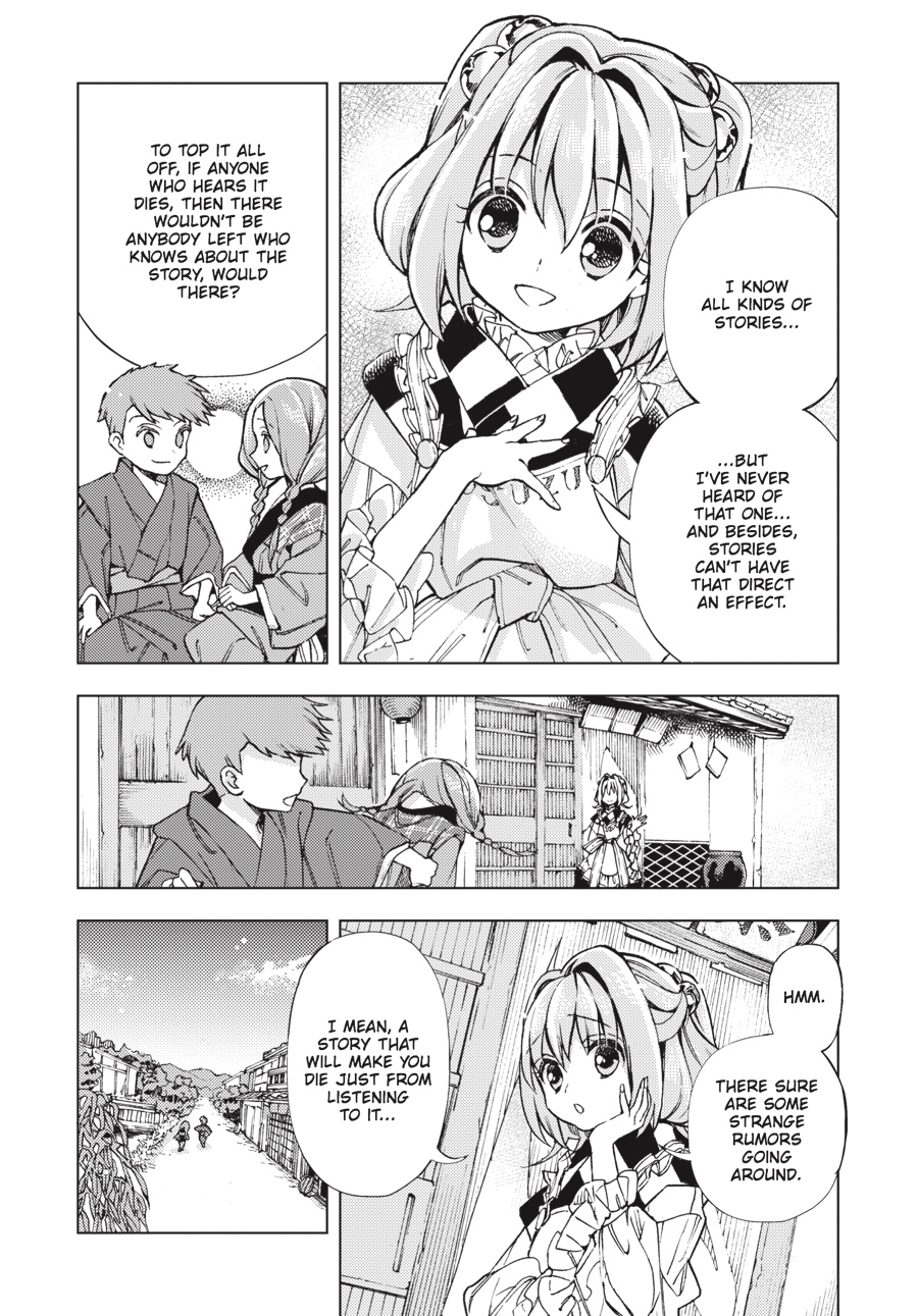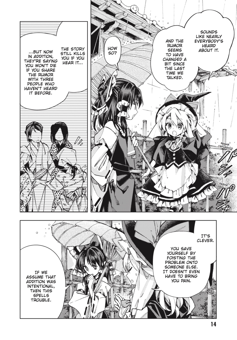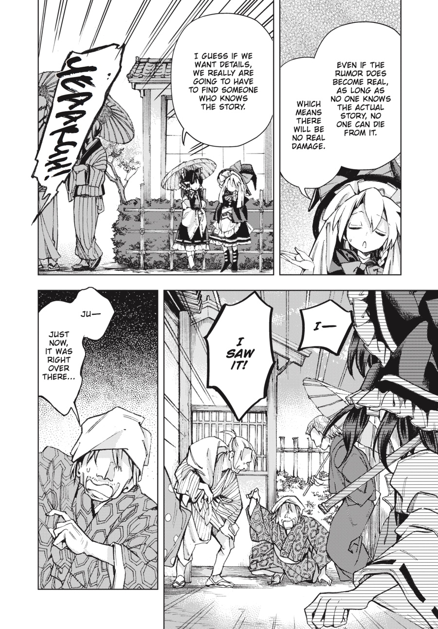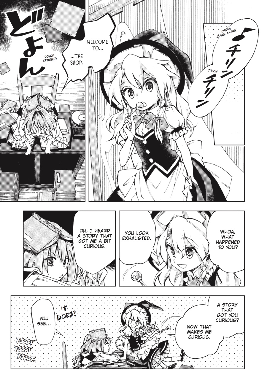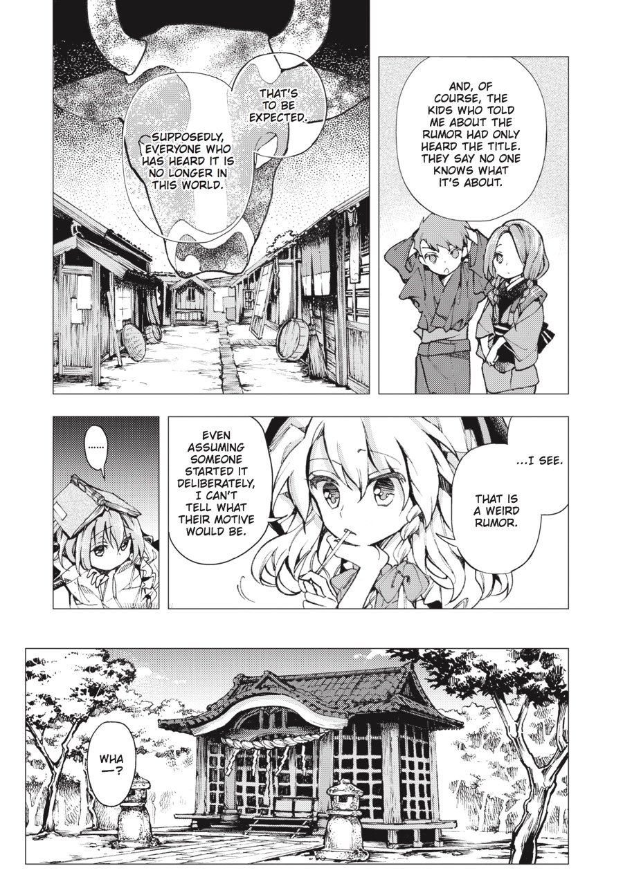 Suzunaan is making a killing from humans and demons alike, and Kosuzu is there as always to watch over the shop and secure some sales. But her insatiable curiosity about the unknown draws her ever closer to the bizarre rumors spreading throughout Gensokyo-and she's not the only one getting involved! Reimu, Marisa, and the other regulars are familiar faces, but where are all these never-before-seen characters coming from?!