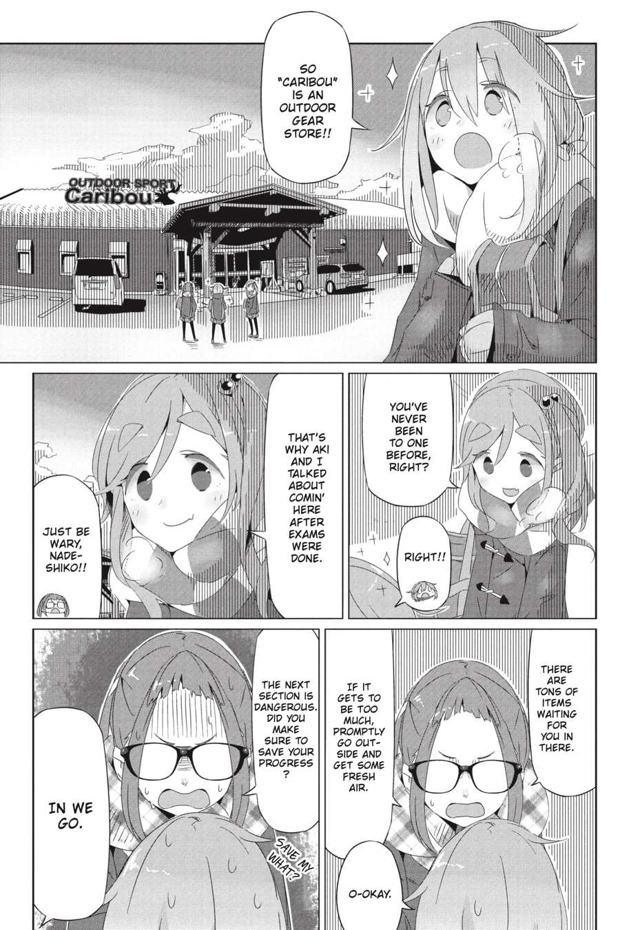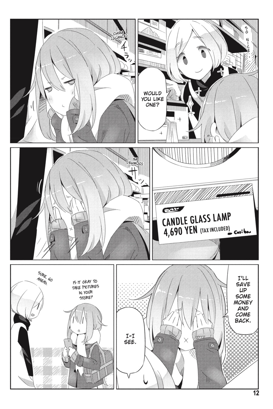 Having passed her exams, Nadeshiko is looking forward to camping with Rin, but a sudden cold keeps Nadeshiko in bed. Now Rin is on an impromptu solo trip to Nagano. While she's used to going it alone, she still keeps thinking about Nadeshiko...Could there be a way for Nadeshiko to come along for the ride after all? Ah, technology and nature in harmony!