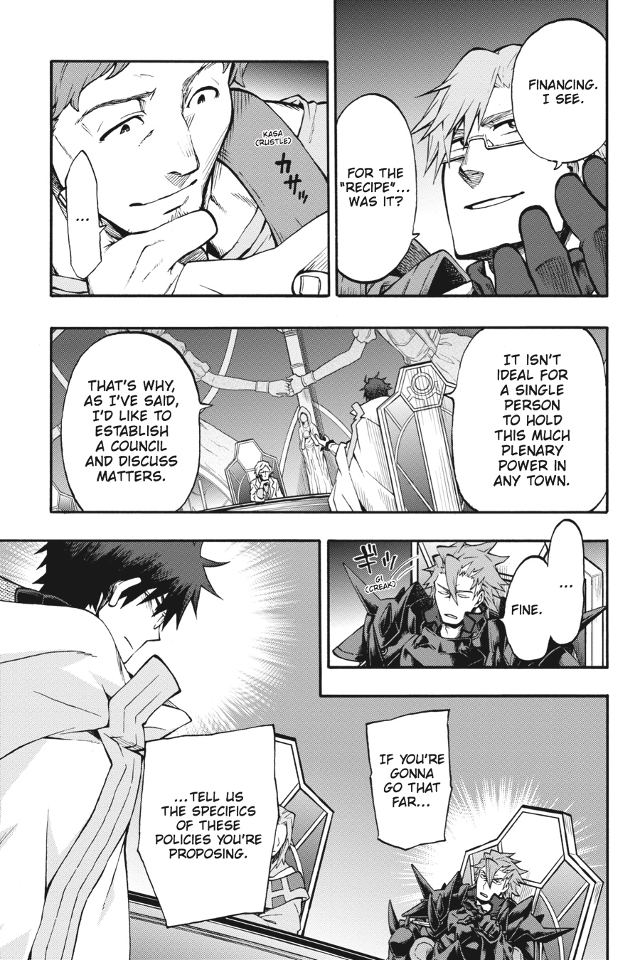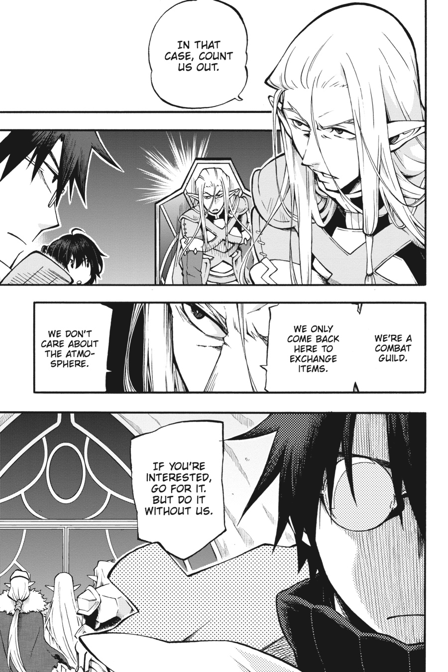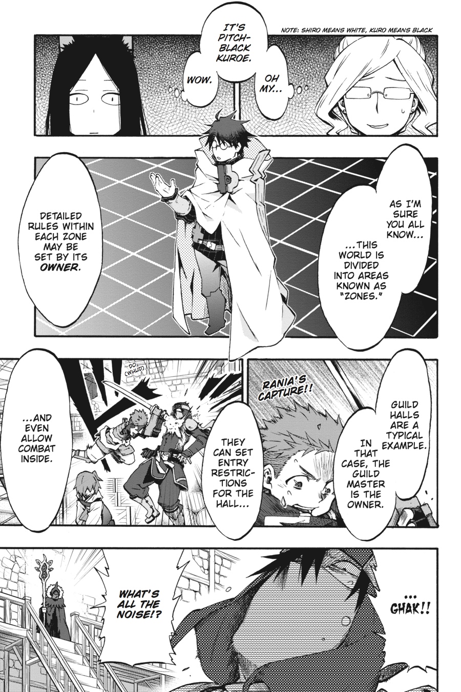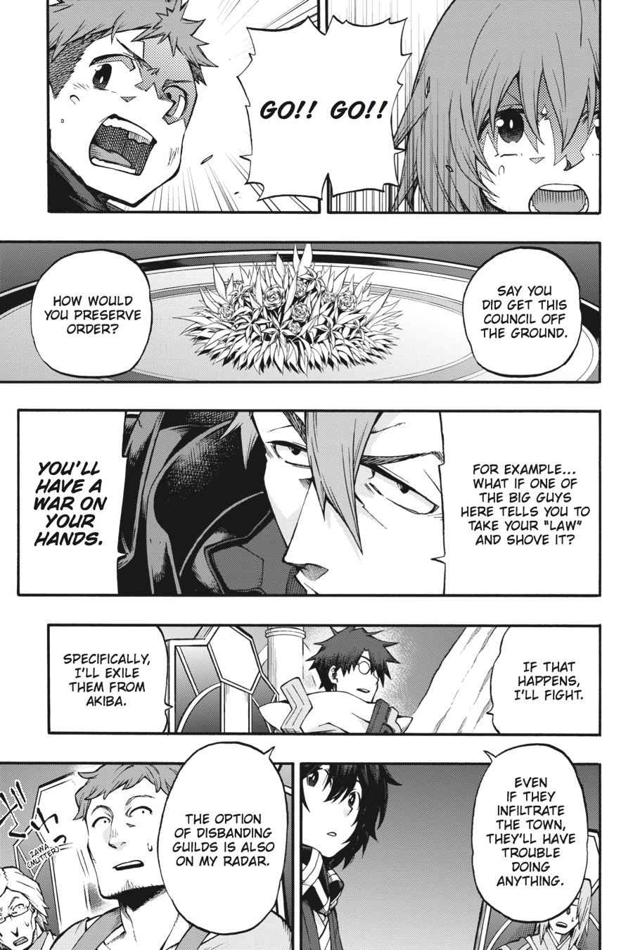 Top guild masters gather in response to a summons from Machiavelli-with-glasses, Shiroe! At an ultra-important conference to determine the fate of the people trapped in the world of an online game, what will Soujirou, the West Wind Brigade guild master, do?!