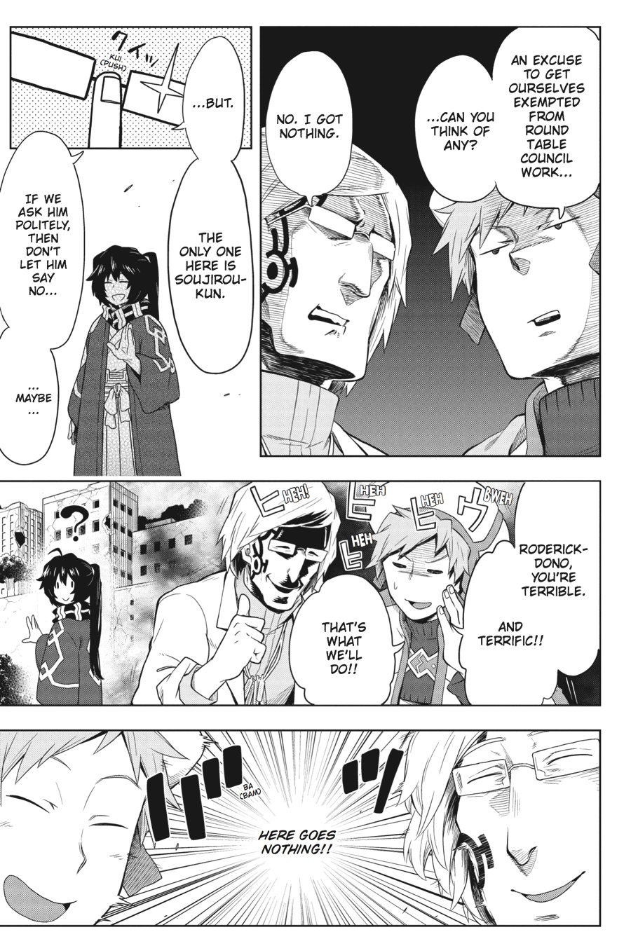 An unforeseen crisis menaces the town of Akiba! When the west wind brigade assumes responsibility for the round table council's general affairs, Kurinon--driven by her obsession with girls--maneuvers secretly in the shadows. Her goal? To discredit Soujirou and create a female utopia! (It's somehow worse than it sounds...)