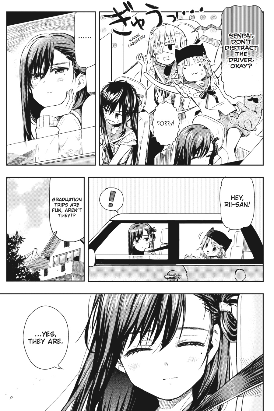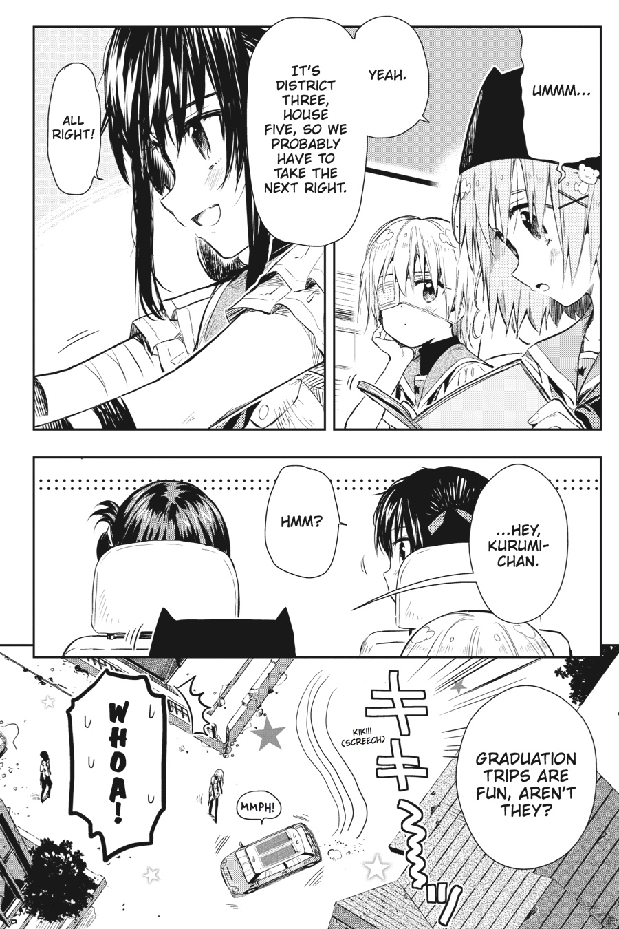 The girls head out on a graduation trip together! There's a mysterious voice on the radio--does that mean someone else is still alive!? In high spirits, the School Living Club sets out to see if they'll be adding a new member.
