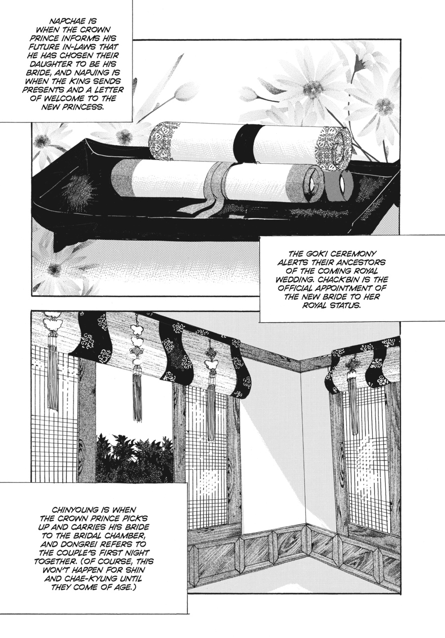 With the wedding ceremony complete, Chae-Kyung and Prince Shin are finally newlyweds...but now they have to spend their first night together?! And as she tries to get accustomed to life as a princess, homesick Chae-Kyung finds no comfort in her haughty husband, who seems determined to antagonize her at every turn. Will the crown prince's attitude ever change? Is the dream of marital bliss doomed to be a nightmarish marital blunder?!