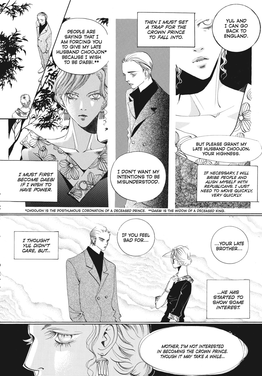 After the king grants his late brother a posthumous coronation, the status quo shifts dramatically as his widow, Yul's mother, gains power in the palace. And she definitely has it out for Shin and Chae-Kyung! When the newlyweds are invited to go abroad, it seems like they might be on the road to romance...but with Yul's mammy dearest determined to make the couple miserable, will they even get off the ground?