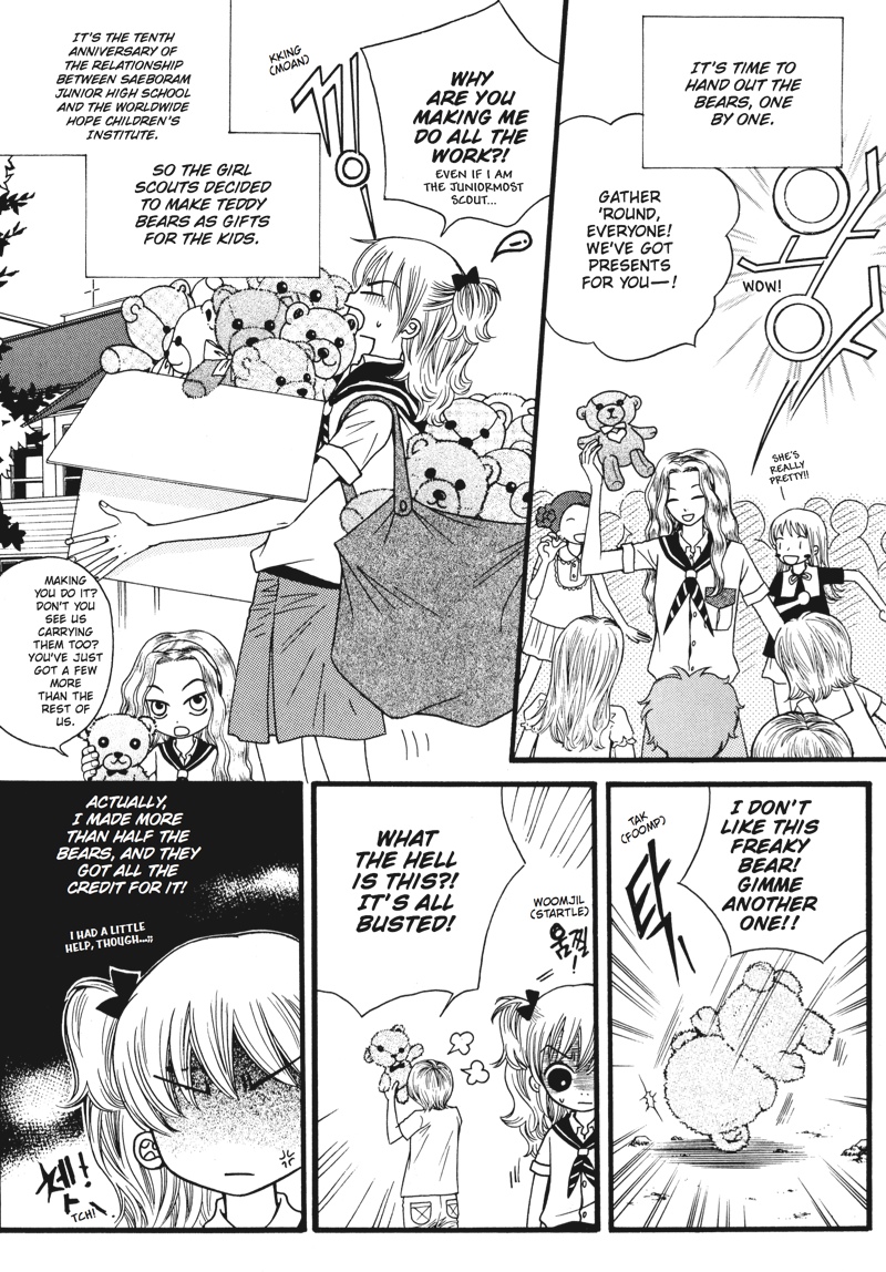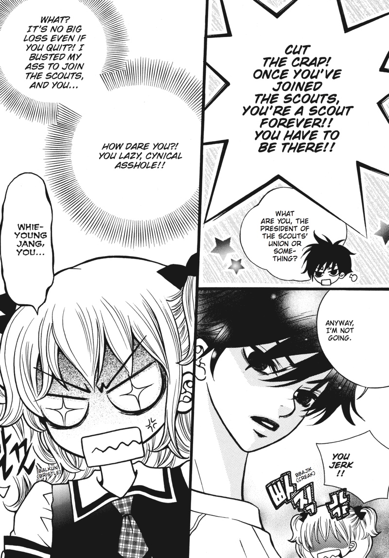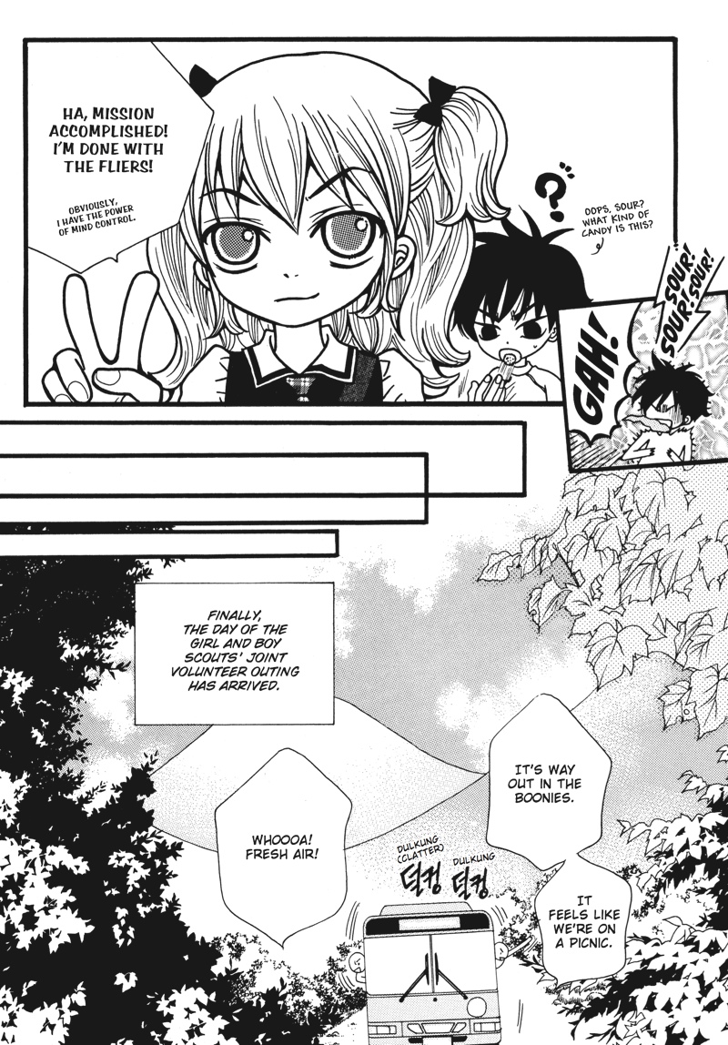 Hee-So's stuck with Sae-Bom on cooking duty at the Scouts' joint volunteer outing at a local orphanage, ruining her chances of showing off in front of Won-Jun! And Sae-Bom's no help either, 'cos she's too busy making lunch for her dearest Whie-Young! Suddenly, it occurs to Hee-So that making lunch for Won-Jun might not be such a bad idea. But when the two girls go to make their special deliveries, a dangerous accident threatens both their lives. And in the heat of the moment, Won-Jun, who witnesses the accident, takes a most unexpected course of action. Has he gone and irreparably crushed Hee-So's dreams? Will Whie-Young be able to pick up the pieces?