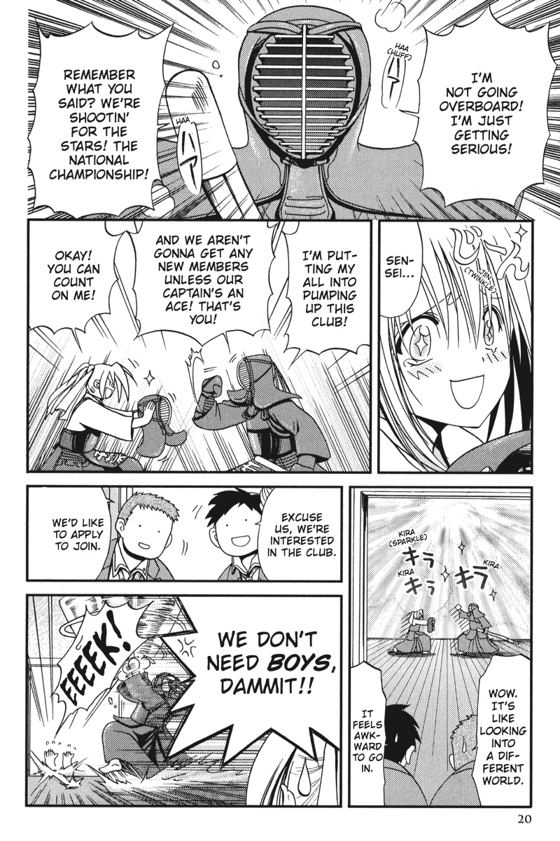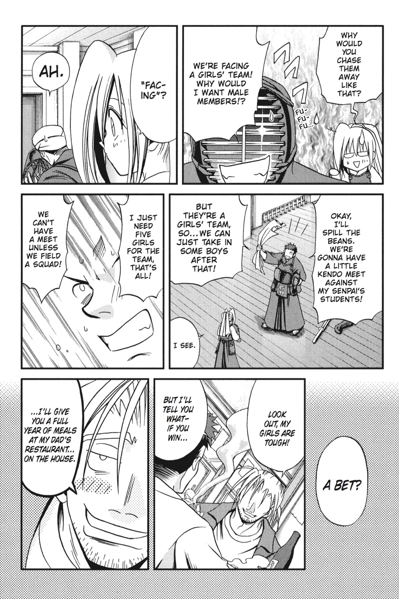 Poor, in debt, and living on instant noodles, high school kendo instructor Kojiro makes a bet with an old friend on a practice meet between the all-girls' teams of their respective schools. The prize: a year's worth of free sushi! It's too good for the desperate Kojiro to pass up! But with only one active member on the kendo team, Korjio must move quickly to put together a squad before the meet. He's got his eye on Tamaki, the daughter of a kendo master and a skilled swordswoman herself. The only trouble is...she's not interested. Kojiro's willing to try anything, but what will it take to win her over?