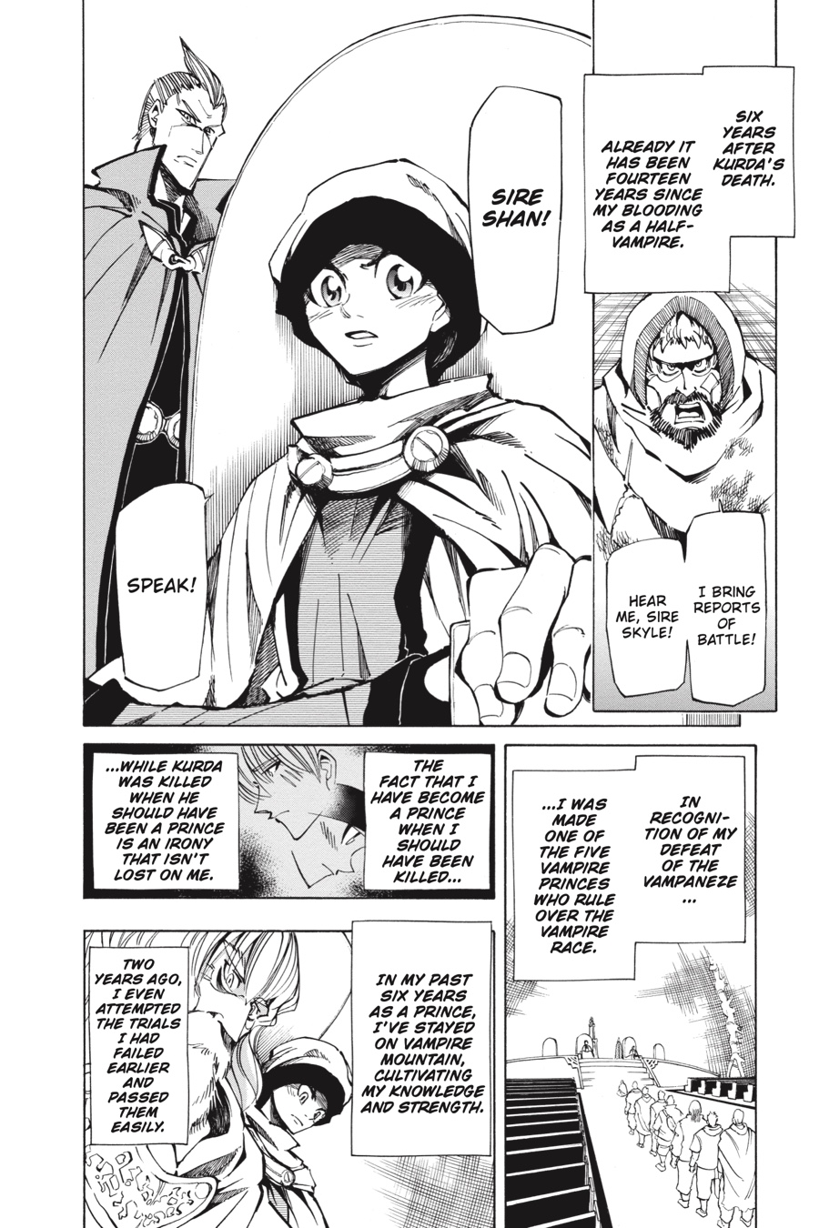 Setting out from Vampire Mountain, Darren embarks on a mission as part of an elite quartet sent to find the Vampanese Lord. Along their journey, though, they are imparted an ominous prophecy: "...If you have face the Vampaneze Lord four times and fail to kill him, only one of you will live to witness the fall of the vampire clan."
