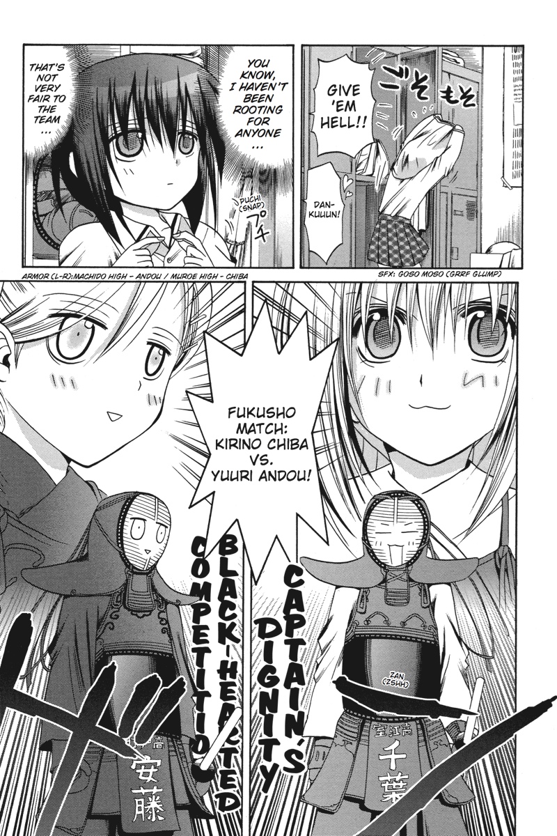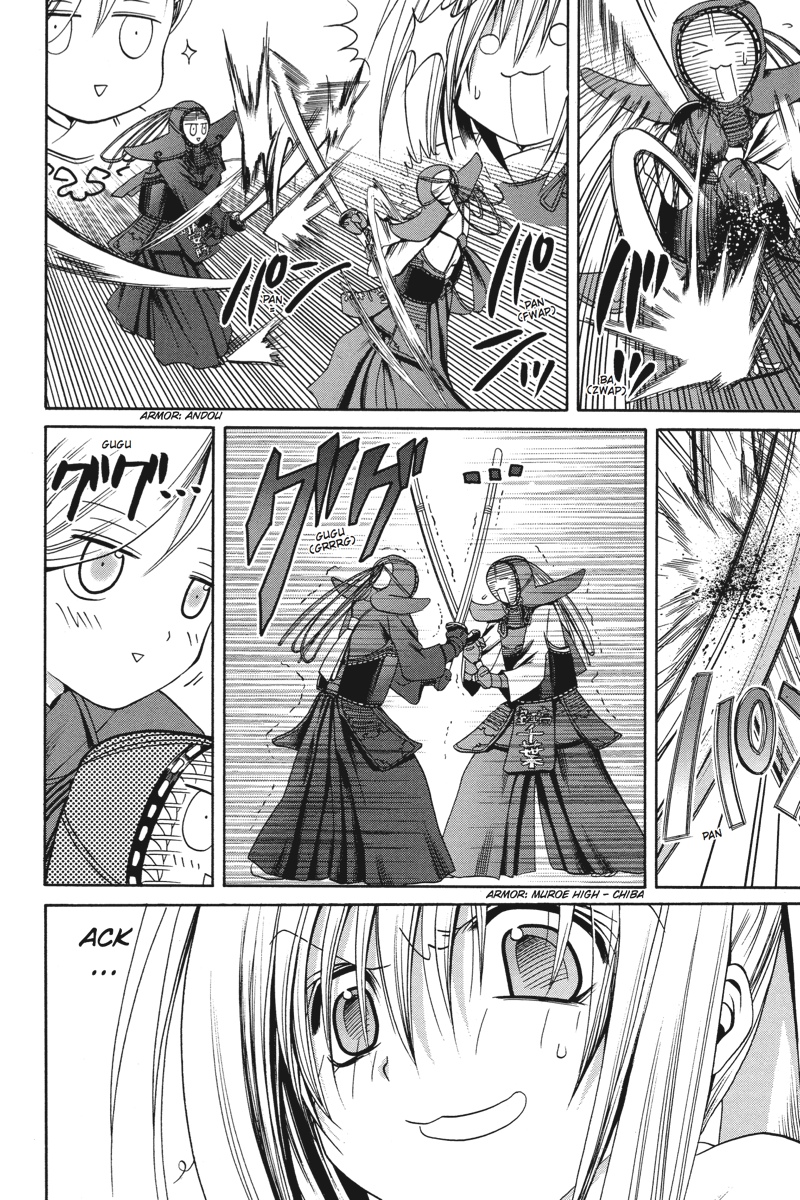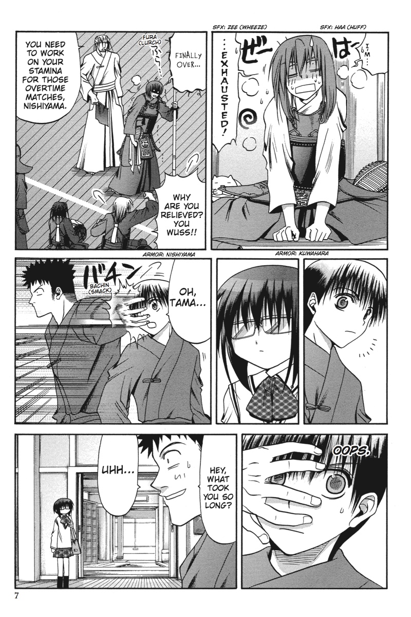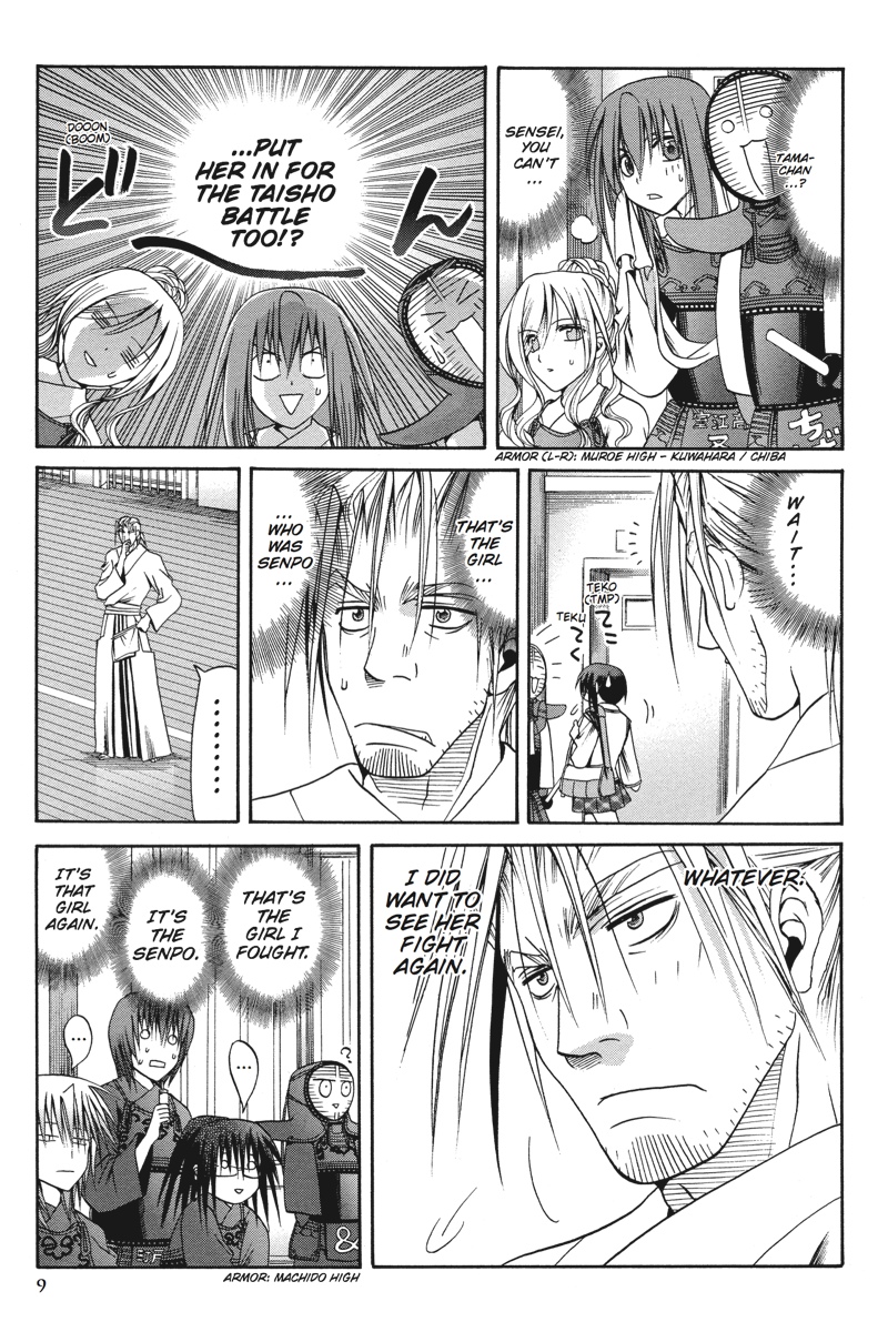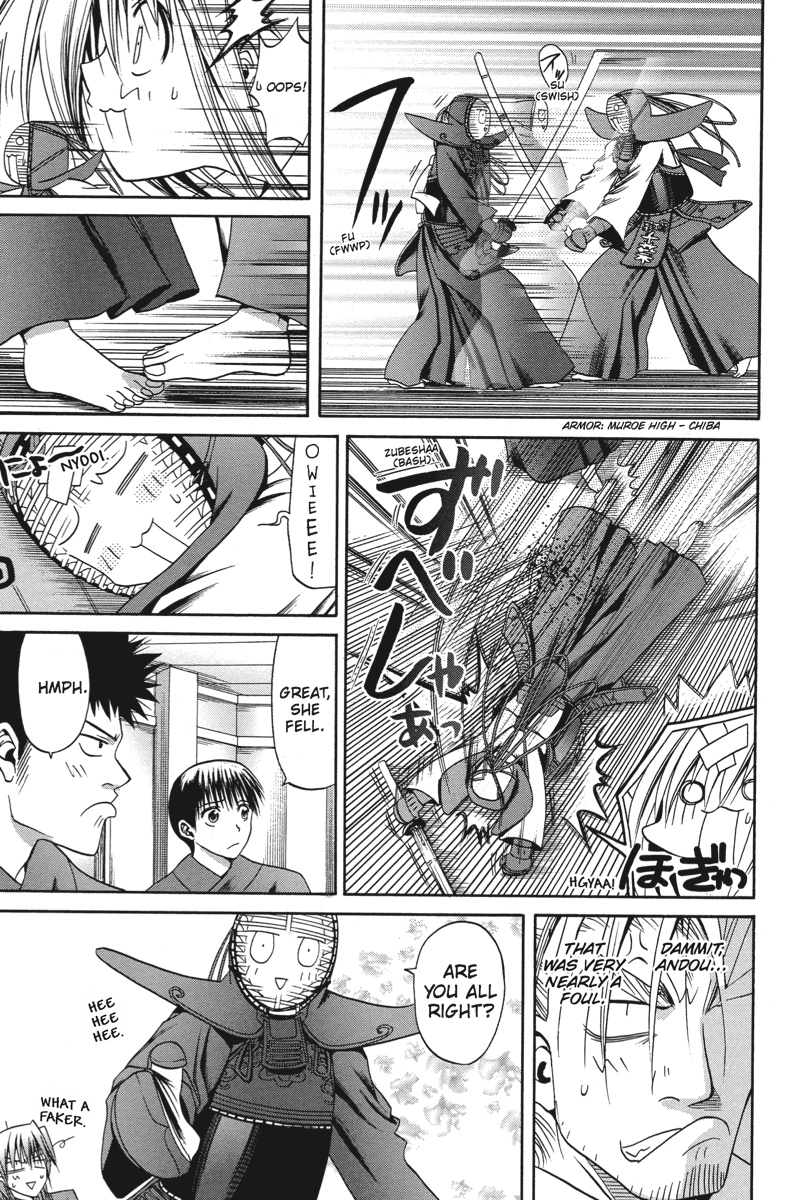 The girls' kendo meet continues with one victory on the board for Muroe High. Despite her inexperience, Miya's ferocious shinai is a force to be reckoned with, and Captain Kirino is no pushover either. It's a tight race until Tamaki reemerges as the bespectacled "Bureiba" to battle in the fifth and final match. But is Tamaki's weak disguise enough to mask her superior abilities?