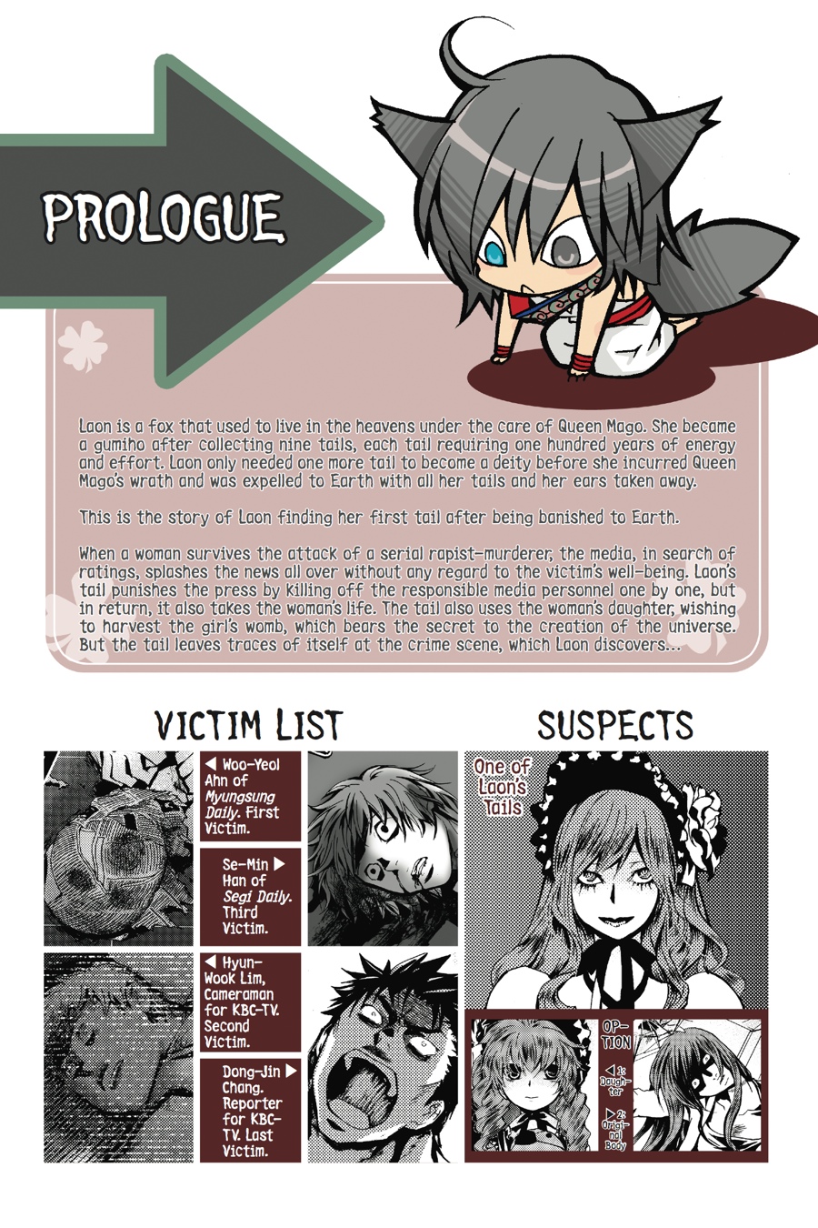 Catching the scent of her tail, Laon pursues her rogue appendage and ends its bloody spree. Meanwhile, the serial rape-murderer is turned in by the Secret Path to the Heavens, and Tae-Ha's timely article on the cult pushes magazine sales through the roof. The attention brings with it a flood of tips about paranormal activity. The strange thing is that all the leads seem to point to the same place. Tae-Ha and Laon go to investigate what he's sure is just an elaborate hoax, but a sudden storm leaves them stranded in the sticks...and in the middle of danger...