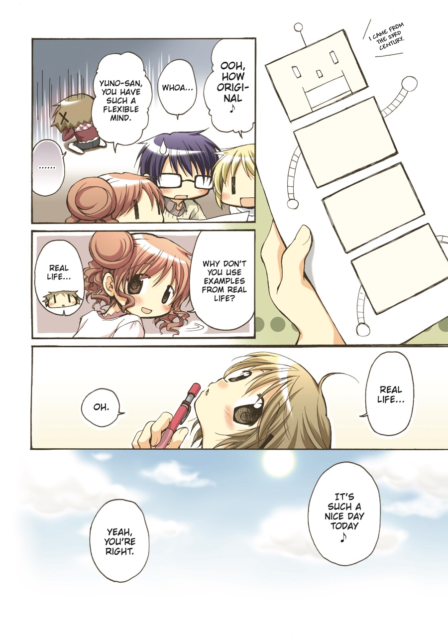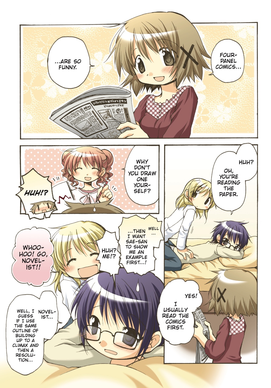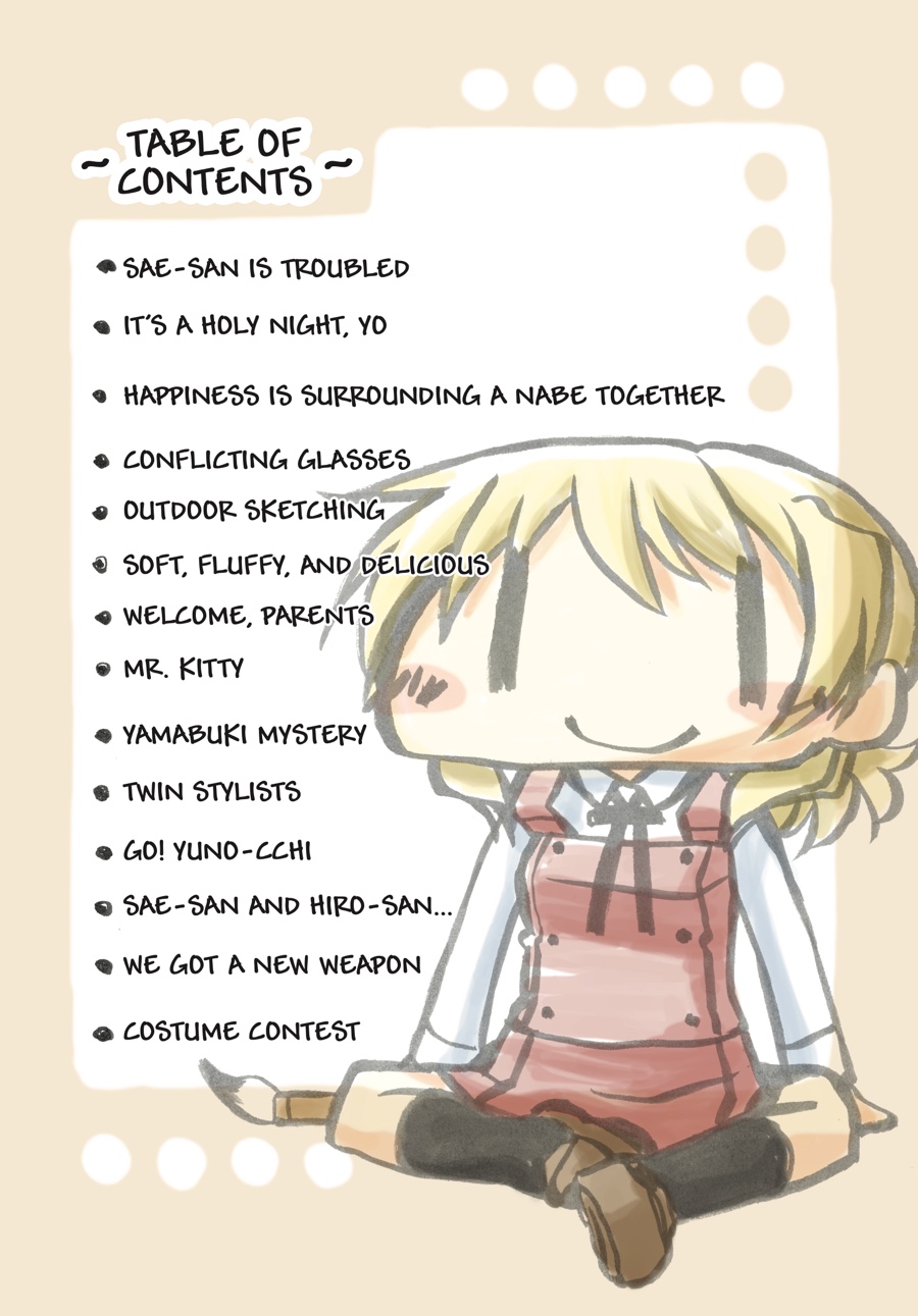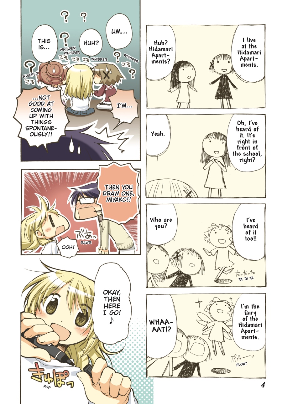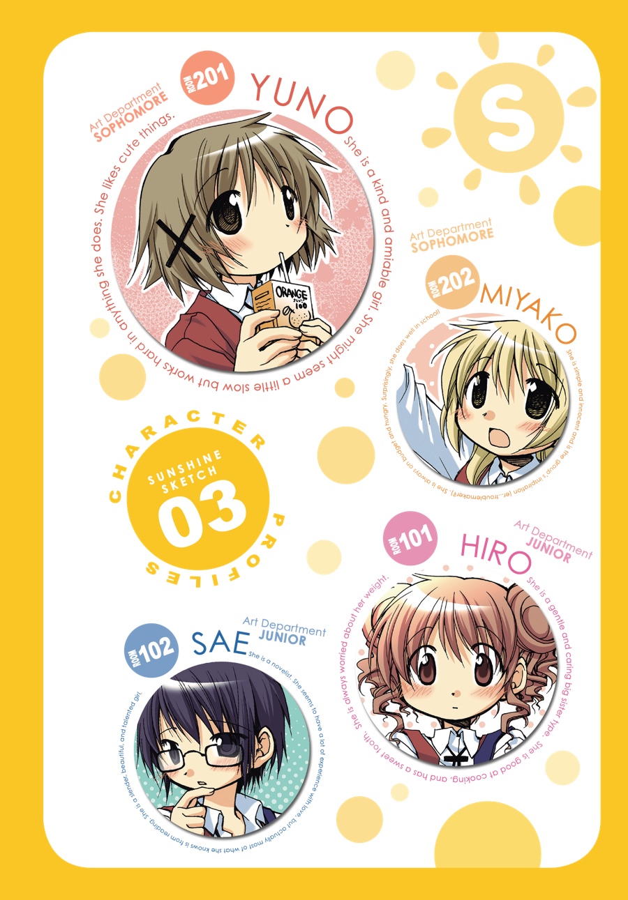 The adventures of Yuno and company continue in the third volume of this hilarious 4-koma series. Yuno is a high school student attending a school which specializes in the arts. With a group of quirky friends and crazy teachers, Yuno feels more and more like she is part of a family at the Hidamari Apartments.