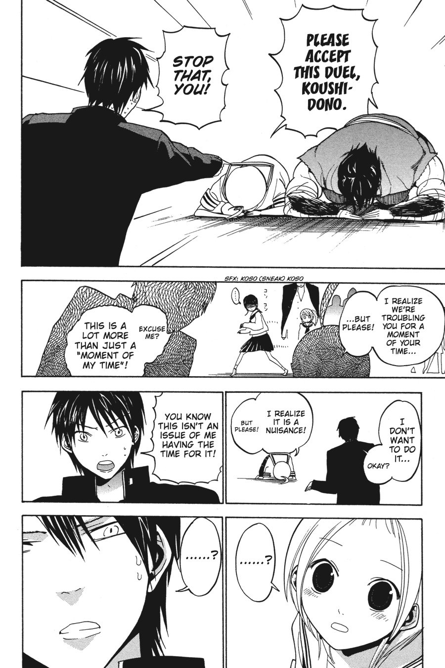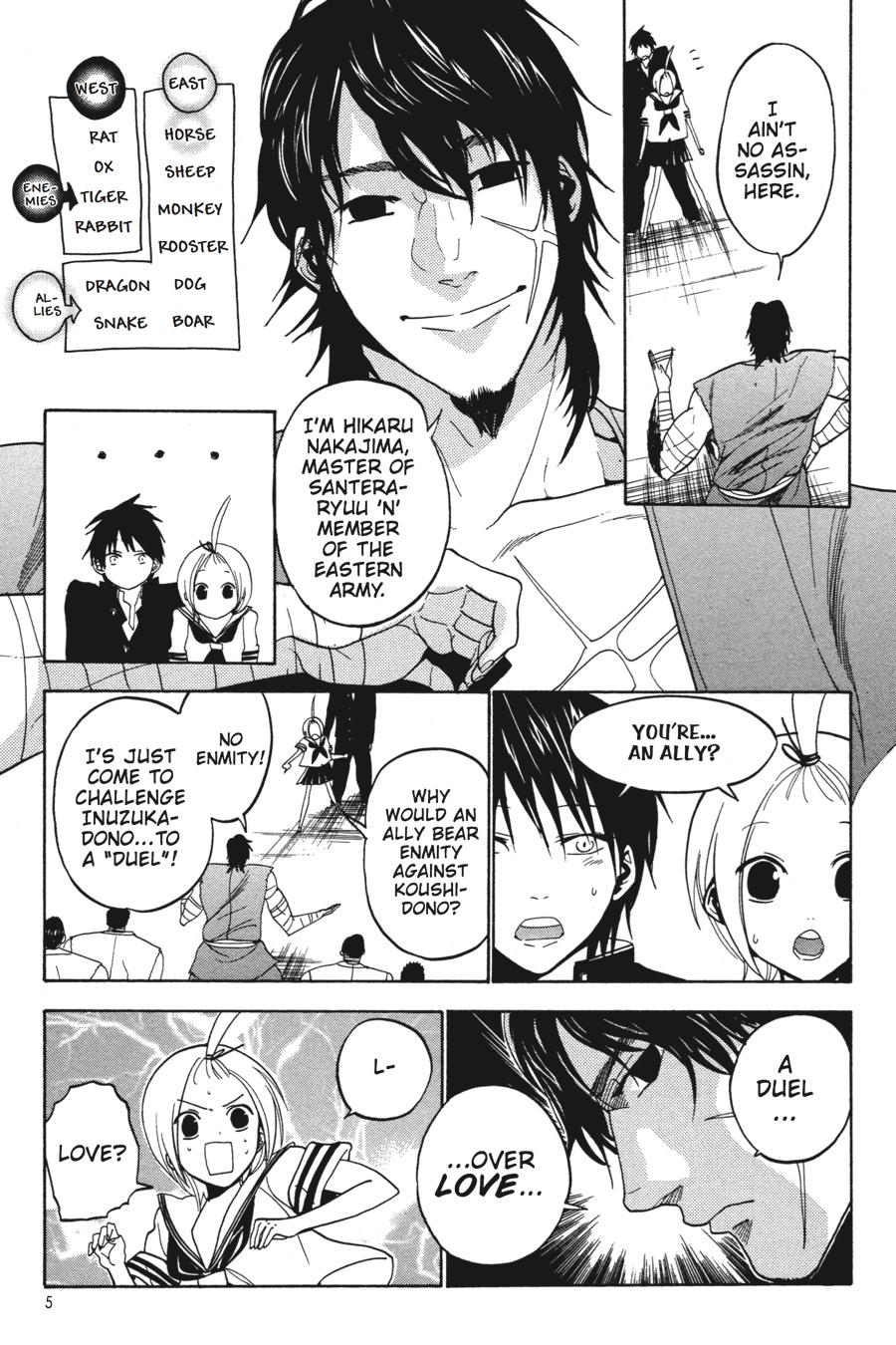 Eager to prove his strength to his fiancée, Hikaru challenges Koushi to a duel. Touched by his heartfelt display, Momoko stands down, leaving Koushi to face the charge alone! But the class rep can't let Koushi come to harm because of her secret affection. Donning the guise of the Heavenly Warrior Horse Mask and swallowing her pride, Sanae unleashes her hidden power at last!