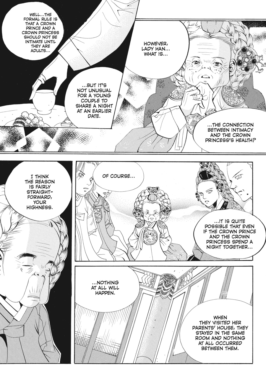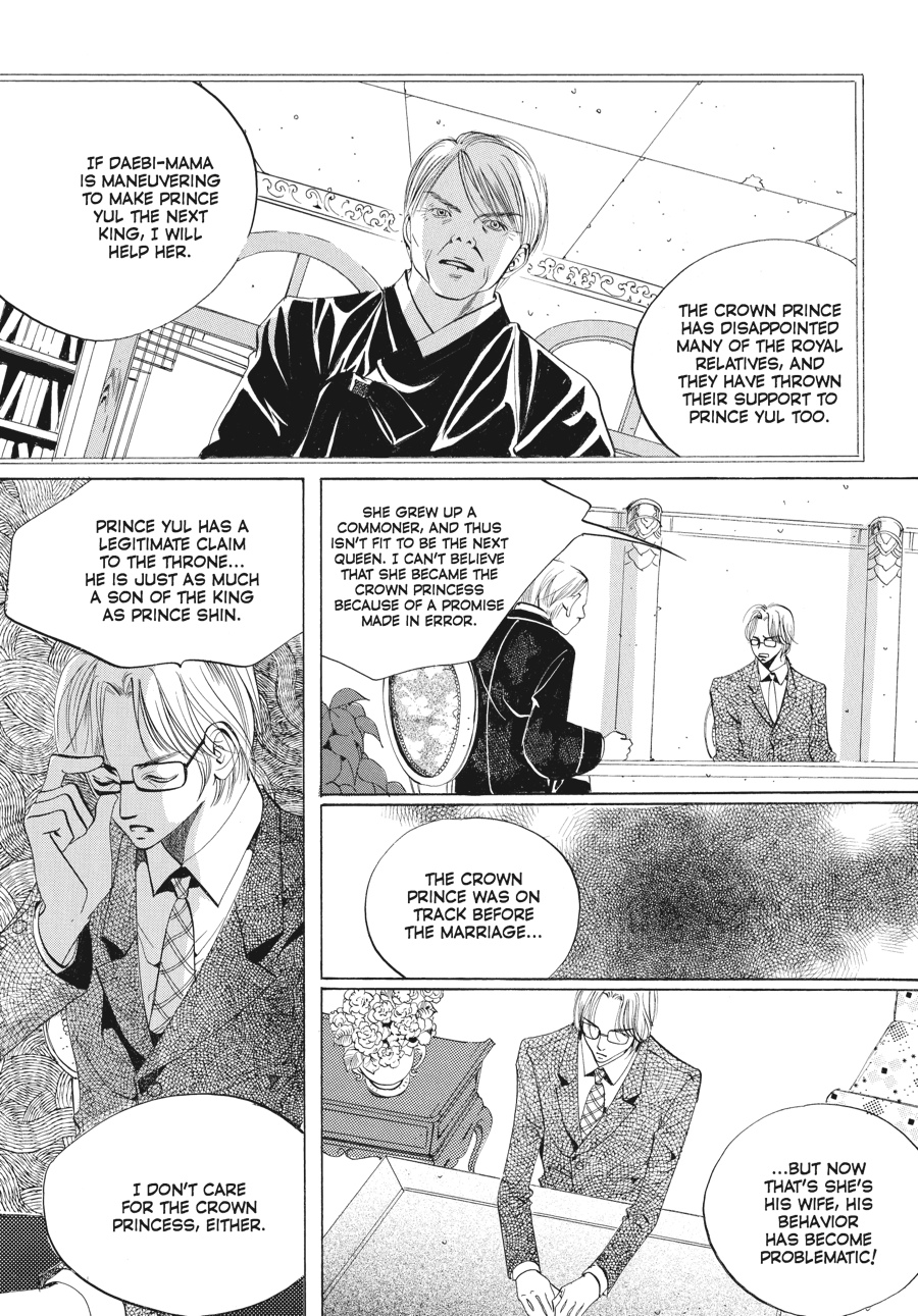 Hoping to clear the air between Shin and Chae-Kyung, the ladies of the court pressure the young couple to get more intimate. But even a night together may not be enough to push the two close. Amid lingering suspicions of Shin's involvement with Hyo-Rin, Yul takes the offensive in claiming not only his right to the throne, but to Chae-Kyung's heart as well...Will her commitment to her husband and her duty as crown princess prevail?