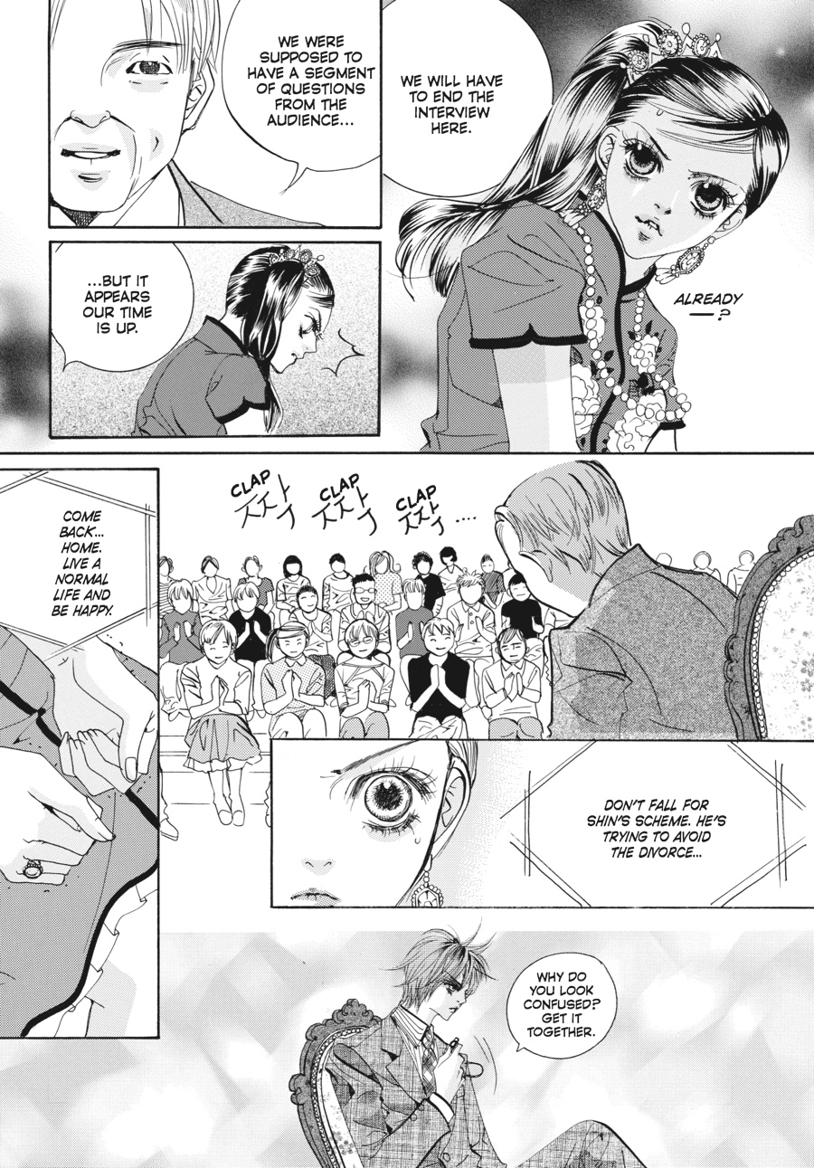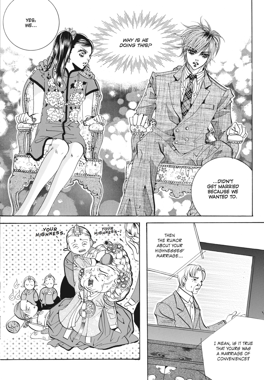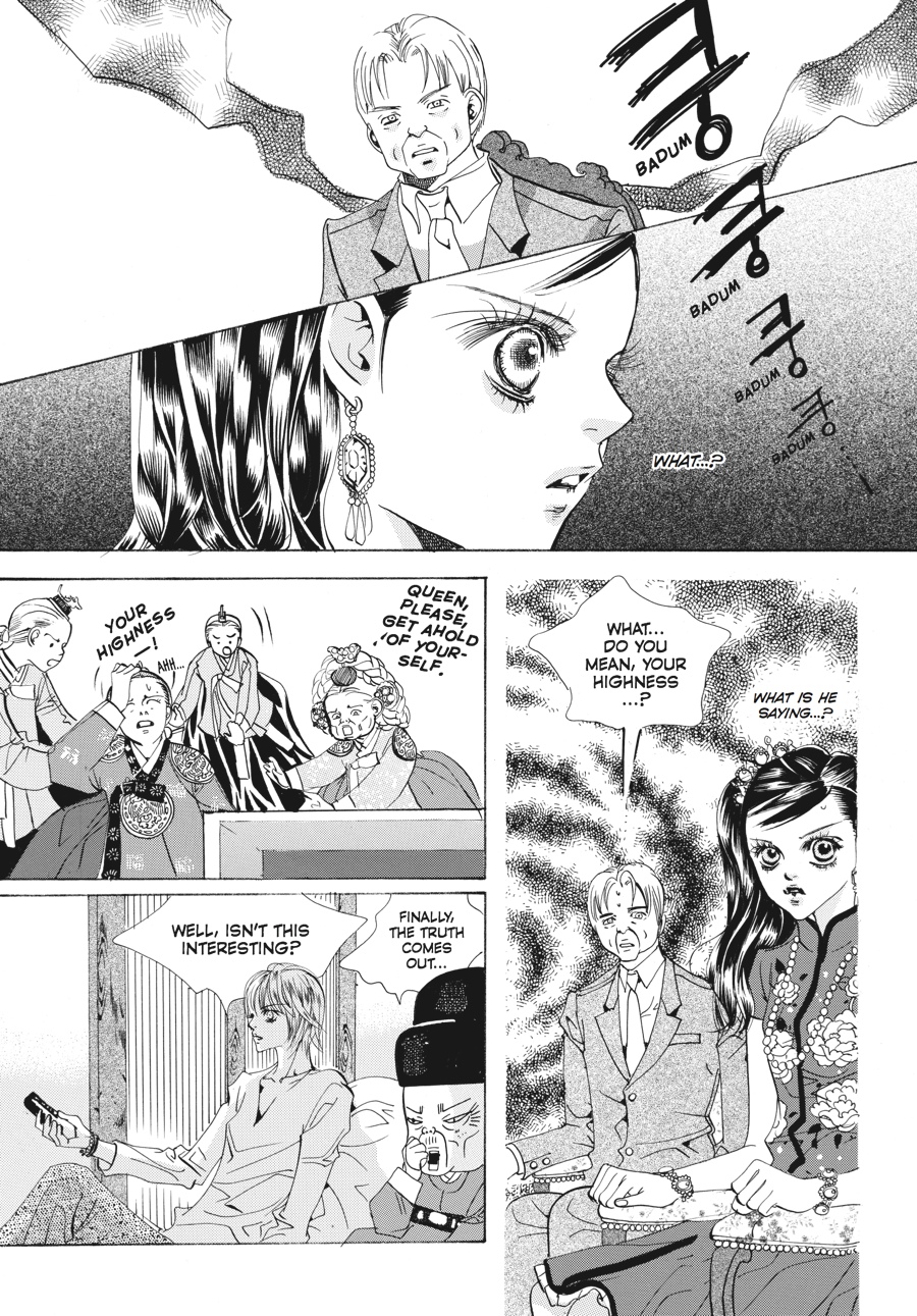 Her grandfather's funeral coming on the heels of the new prince's birth, Chae-Kyung is thrown into turmoil as her loved ones on both sides of the palace wall suffer. While her family grieves, her husband, Crown Prince Shin, is torn between royal duty and telling his wife the truth about the circumstances surrounding her beloved grandfather's death. He must also plot to keep and strengthen his royal position, as his father, the king, seeks to right a past wrong by depriving Shin of his title. And when his father reveals to Shin the truth of how he came to power, the house of cards upon which the king has built his authority begins to tumble in earnest, for the palace walls have ears...and they all seem to belong to Yul! Despite the announcement of Yul's own engagement, this erstwhile crown prince and opportunistic keeper of royal secrets will do anything it takes to steal Chae-Kyung away from Shin...even if it means using his own family's indiscretions to do so!
