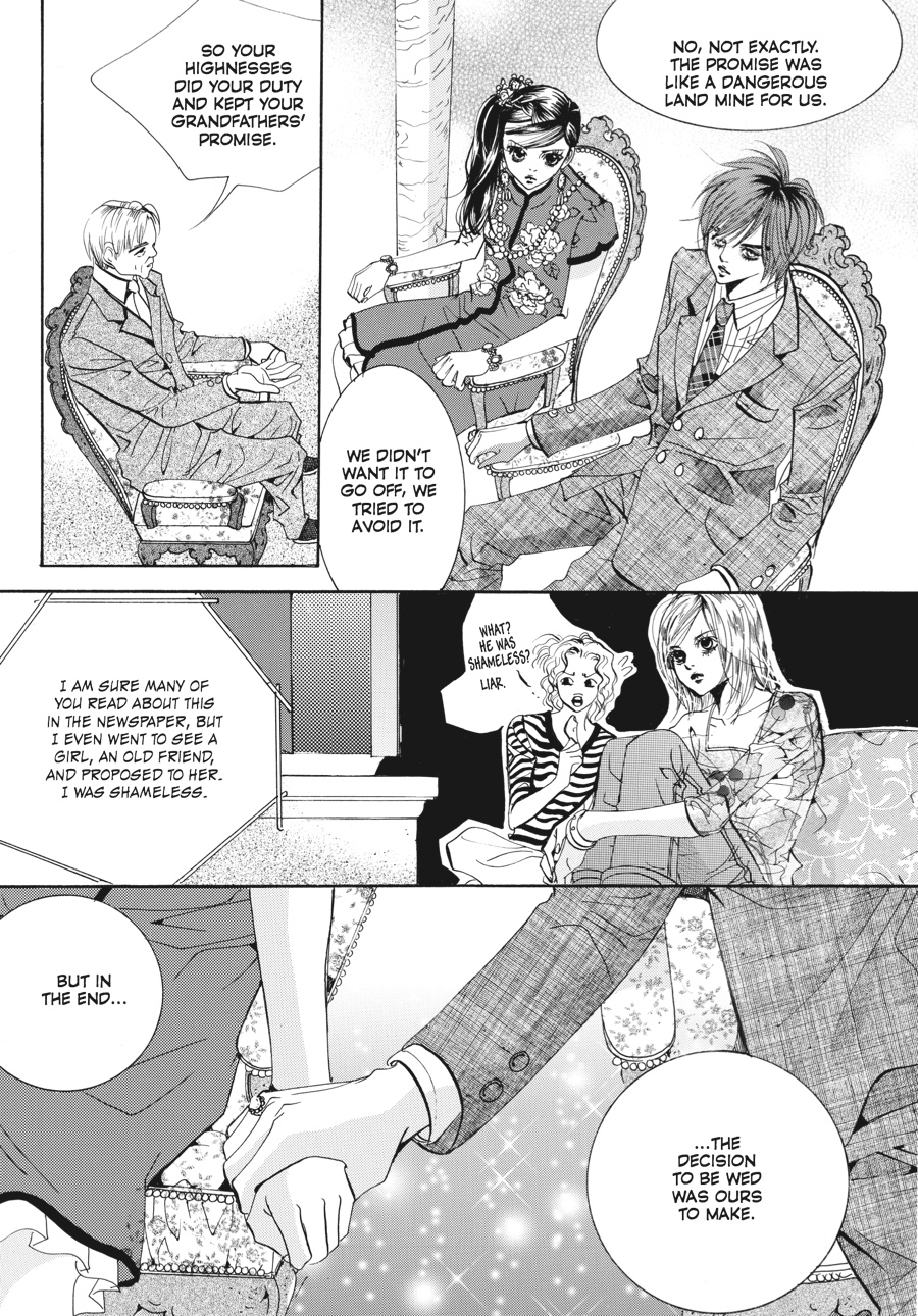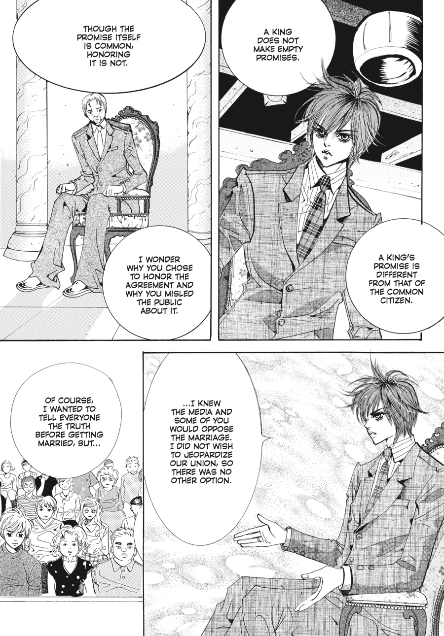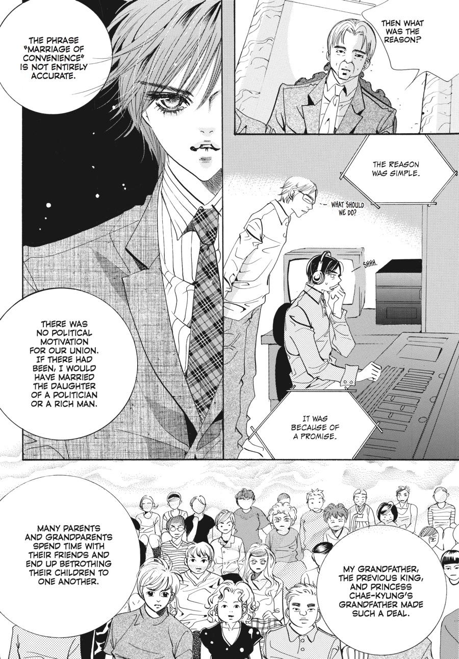 Her grandfather's funeral coming on the heels of the new prince's birth, Chae-Kyung is thrown into turmoil as her loved ones on both sides of the palace wall suffer. While her family grieves, her husband, Crown Prince Shin, is torn between royal duty and telling his wife the truth about the circumstances surrounding her beloved grandfather's death. He must also plot to keep and strengthen his royal position, as his father, the king, seeks to right a past wrong by depriving Shin of his title. And when his father reveals to Shin the truth of how he came to power, the house of cards upon which the king has built his authority begins to tumble in earnest, for the palace walls have ears...and they all seem to belong to Yul! Despite the announcement of Yul's own engagement, this erstwhile crown prince and opportunistic keeper of royal secrets will do anything it takes to steal Chae-Kyung away from Shin...even if it means using his own family's indiscretions to do so!