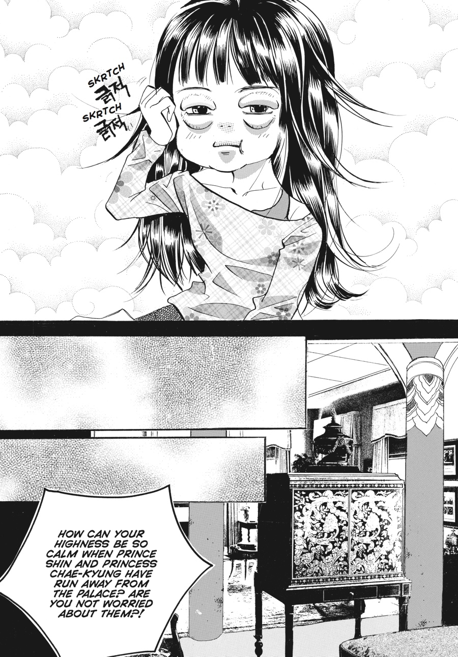 When a leisurely hot-springs trip with the Queen Mother intended to bring the future royal couples closer throws Prince Shi, Hyo-Rin, Yul, and Mi-Roo together, fireworks are on the horizon. It quickly becomes painfully clear to all involved - especially Hyo-Rin - that Shin has his ex-wife, Chae-Kyung, on his mind. And when Yul and Shin find themselves alone, Shin confronts Yul, asking him to come clean about his part in Shin's divorce from Chae-Kyung! To make matters worse, Shin isn't the only one with sneaking suspicions about the divorce. The king is about to throw himself into the fray by taking Yul to task!