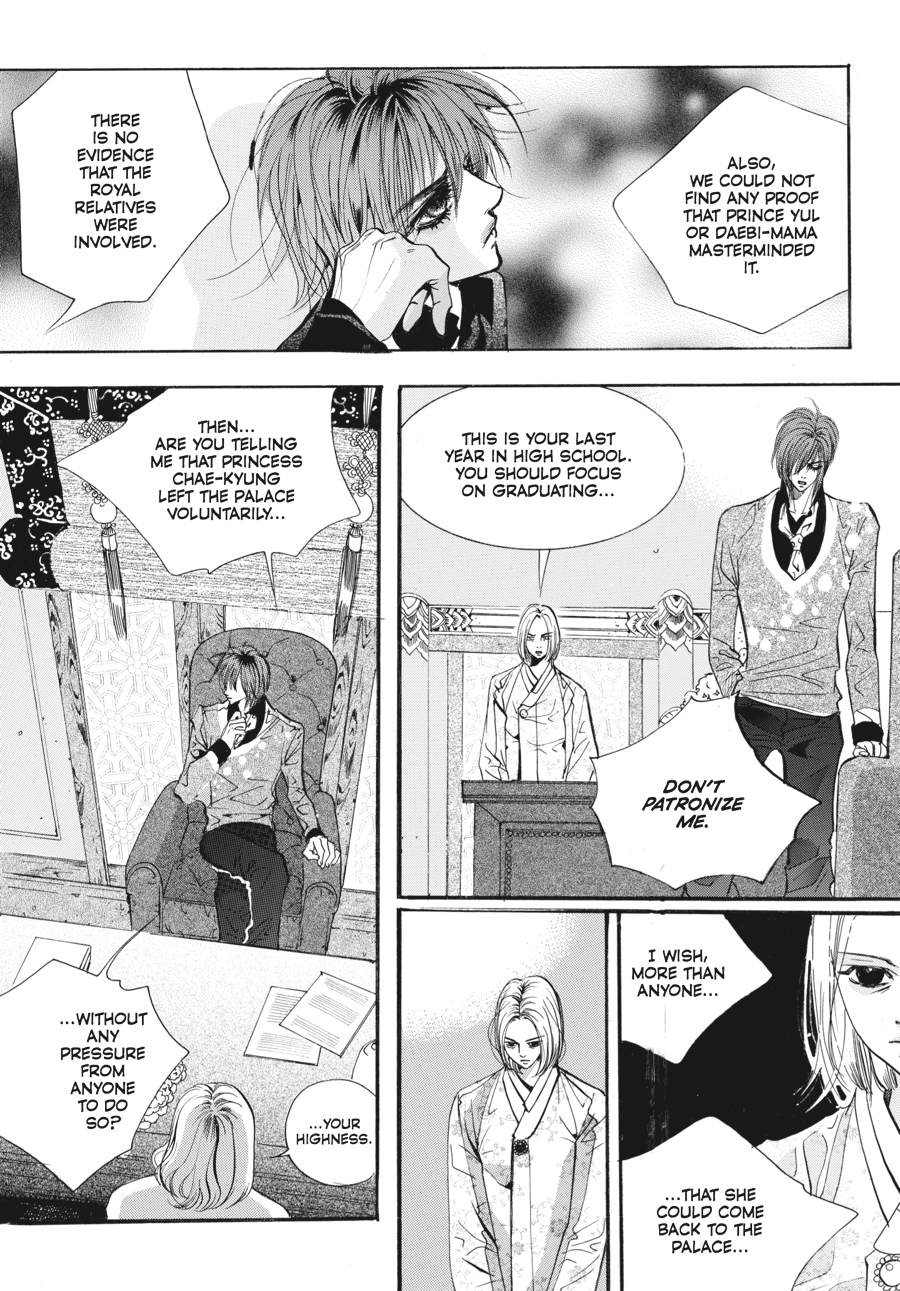 Amid the fallout from the king's decision to make Prince Yul the crown prince, Chae-Kyung and Shin make plans to get back together. Meanwhile Yul struggles to get to the bottom of his mother's involvement in the accident that may have cost Chae-Kyung dearly. But when he confronts her, the Daebi reveals a shocking secret from seventeen years ago, which will set into motion events that will change their lives forever!