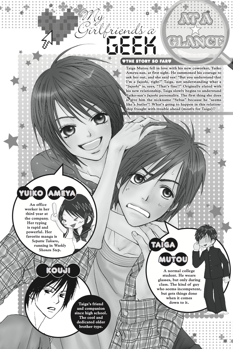 Now that Taiga's relationship with his dream girl, Yuiko, is in full swing, he's being gradually initiated into the ways of fujoshi (a very, shall we say, distinct kind of girl geek). Actually, it's more like he's being hazed, considering everything from his own name to his friendships with other guys is fair game for Yuiko's fujoshi filter! Subjected to various emasculating indignities, all in the name of love, Taiga is clearly a guy with the patience of a saint and some serious feelings for his girl. But when a fangirl outing to the bookstore leads to an encounter with a sexy businessman who obviously has an eye on Yuiko, will Taiga be man enough to tell Mr. Perfect to step off?