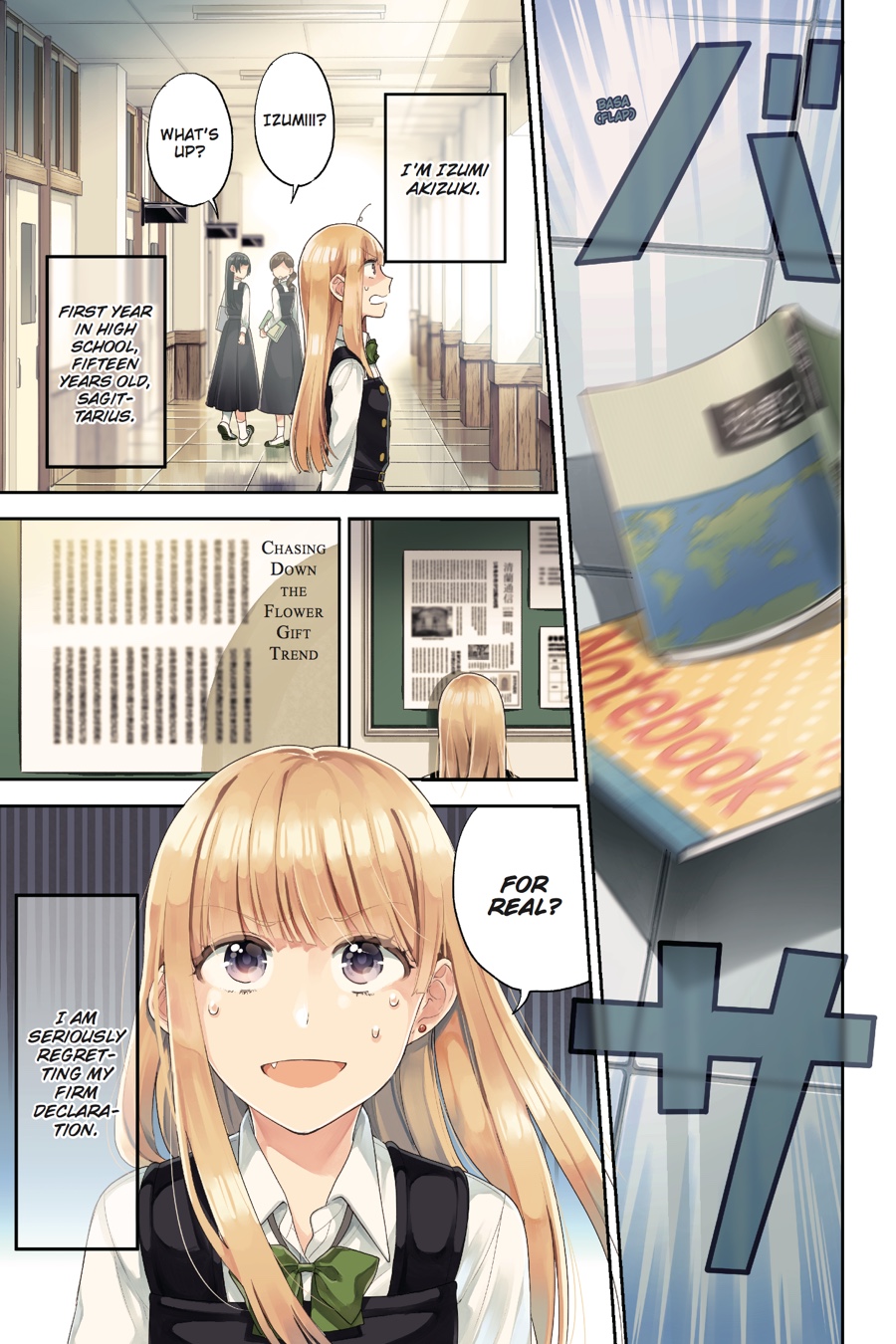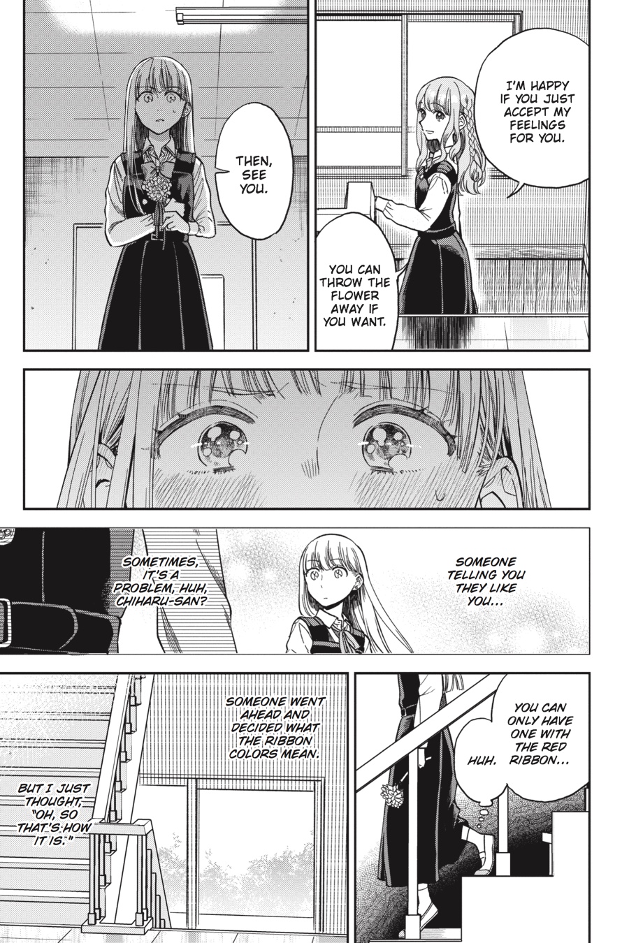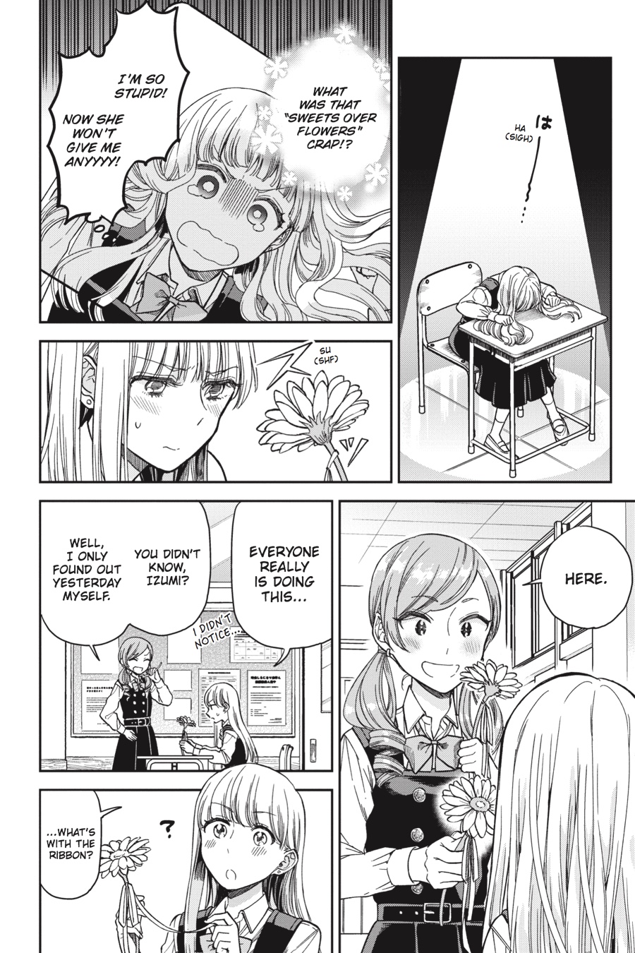 Yellow for gratitude. Pink for respect. Violet for apology. Red...for that someone special...This is the language of ribbons wrapped around flowers. What does it mean, though, when the person giving Izumi a flower wrapped in red is handing them out to multiple people? Is it okay for Izumi to keep it, even though Chiharu is the only one for her? While Izumi grapples with this question, Chiharu has to decide what's important to her when the one who broke her heart, Hoshino-senpai, pays a visit...