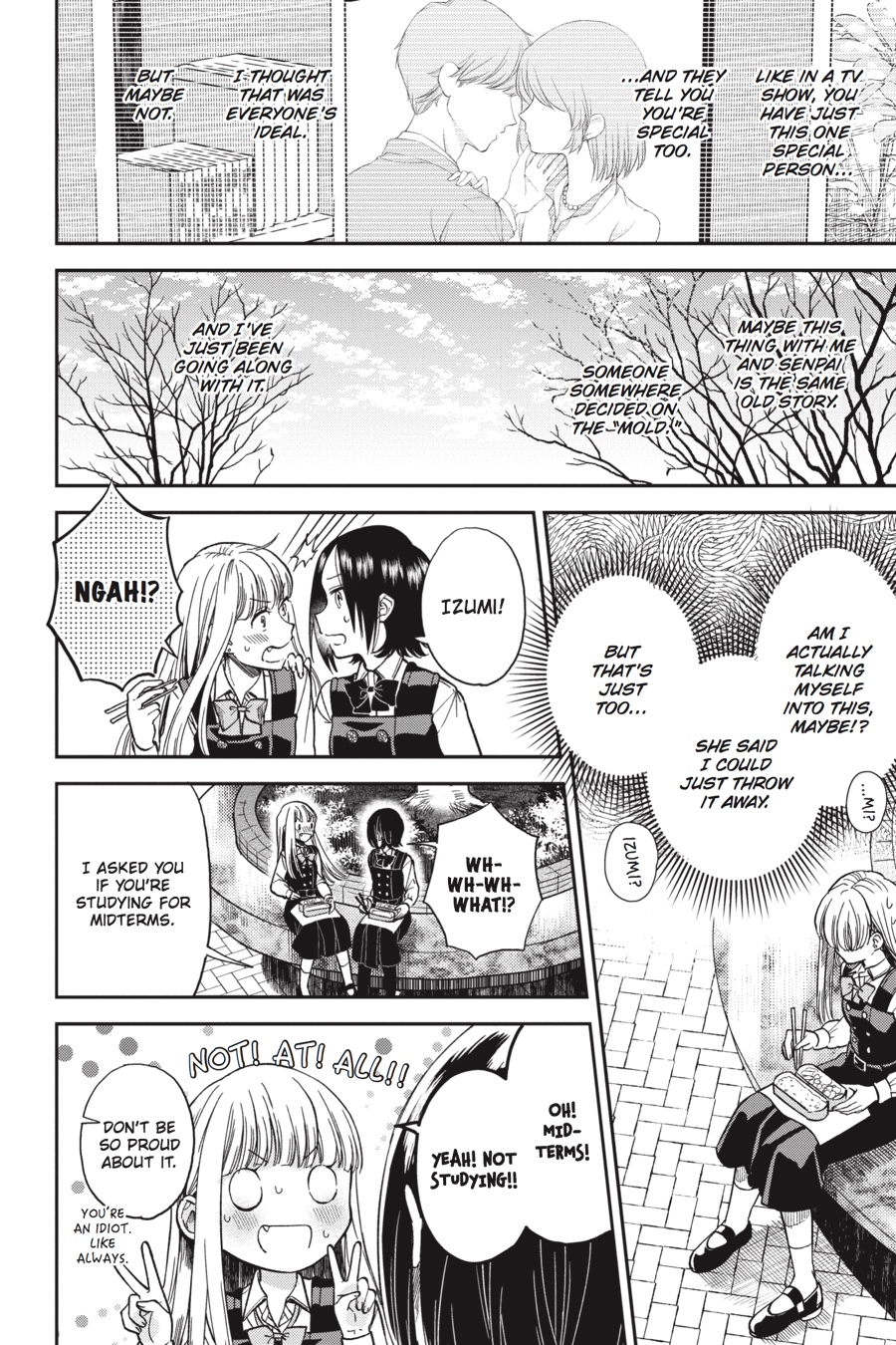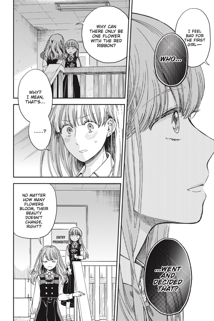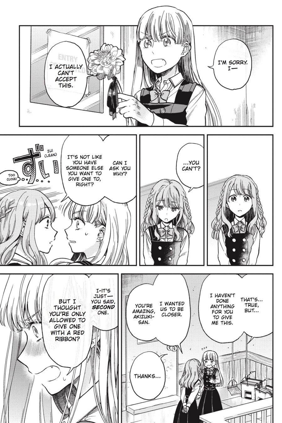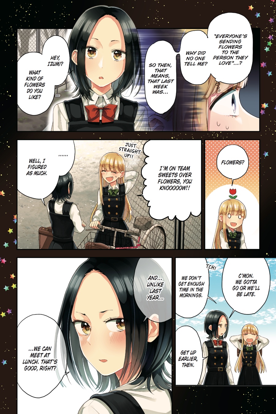 Yellow for gratitude. Pink for respect. Violet for apology. Red...for that someone special...This is the language of ribbons wrapped around flowers. What does it mean, though, when the person giving Izumi a flower wrapped in red is handing them out to multiple people? Is it okay for Izumi to keep it, even though Chiharu is the only one for her? While Izumi grapples with this question, Chiharu has to decide what's important to her when the one who broke her heart, Hoshino-senpai, pays a visit...