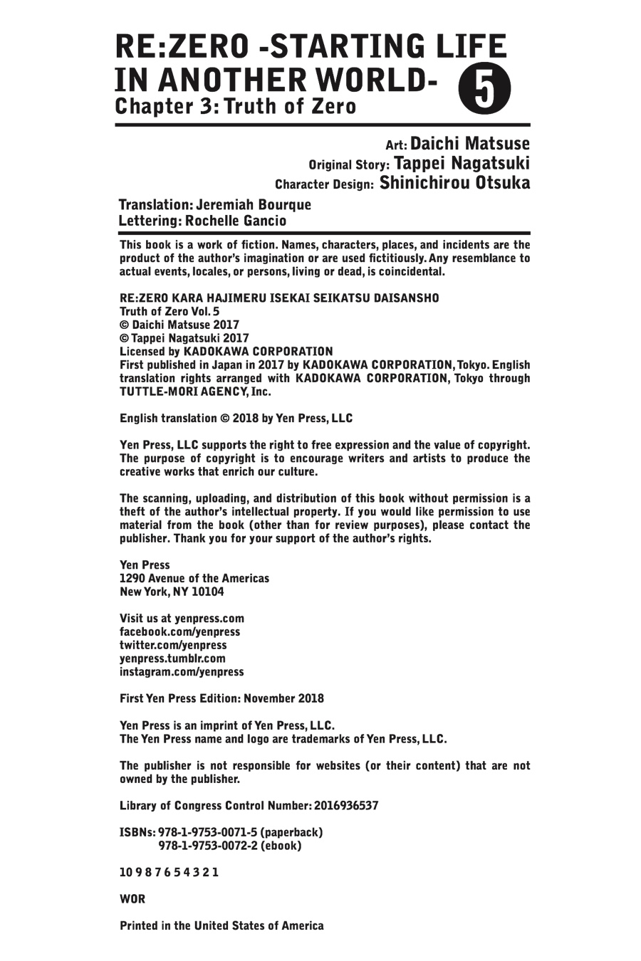 Re:ZERO -Starting Life in Another World-, Chapter 3: Truth of Zero, Vol. 5 (manga)