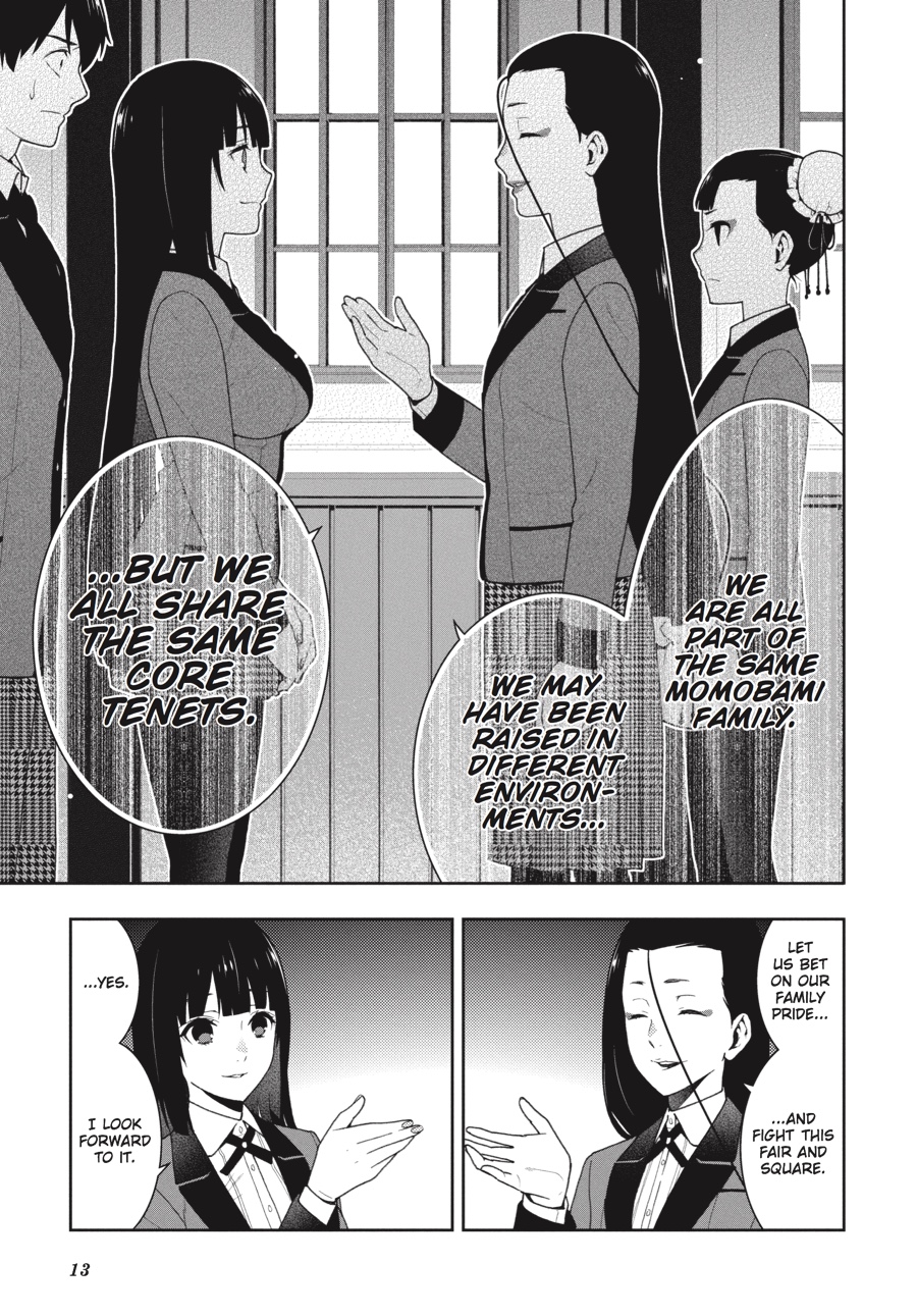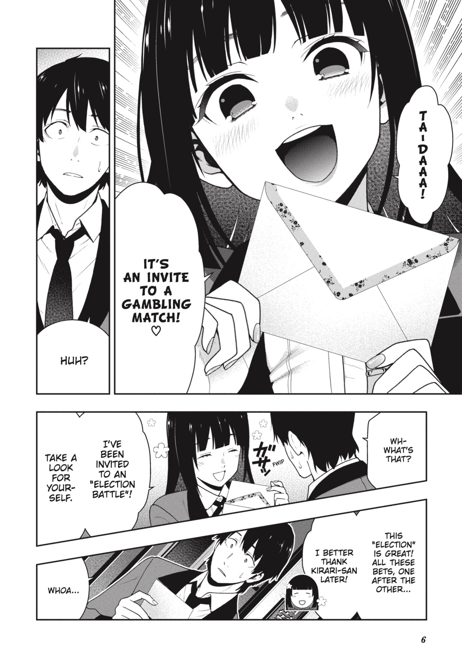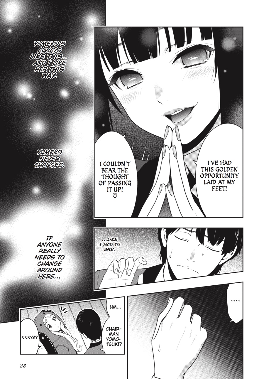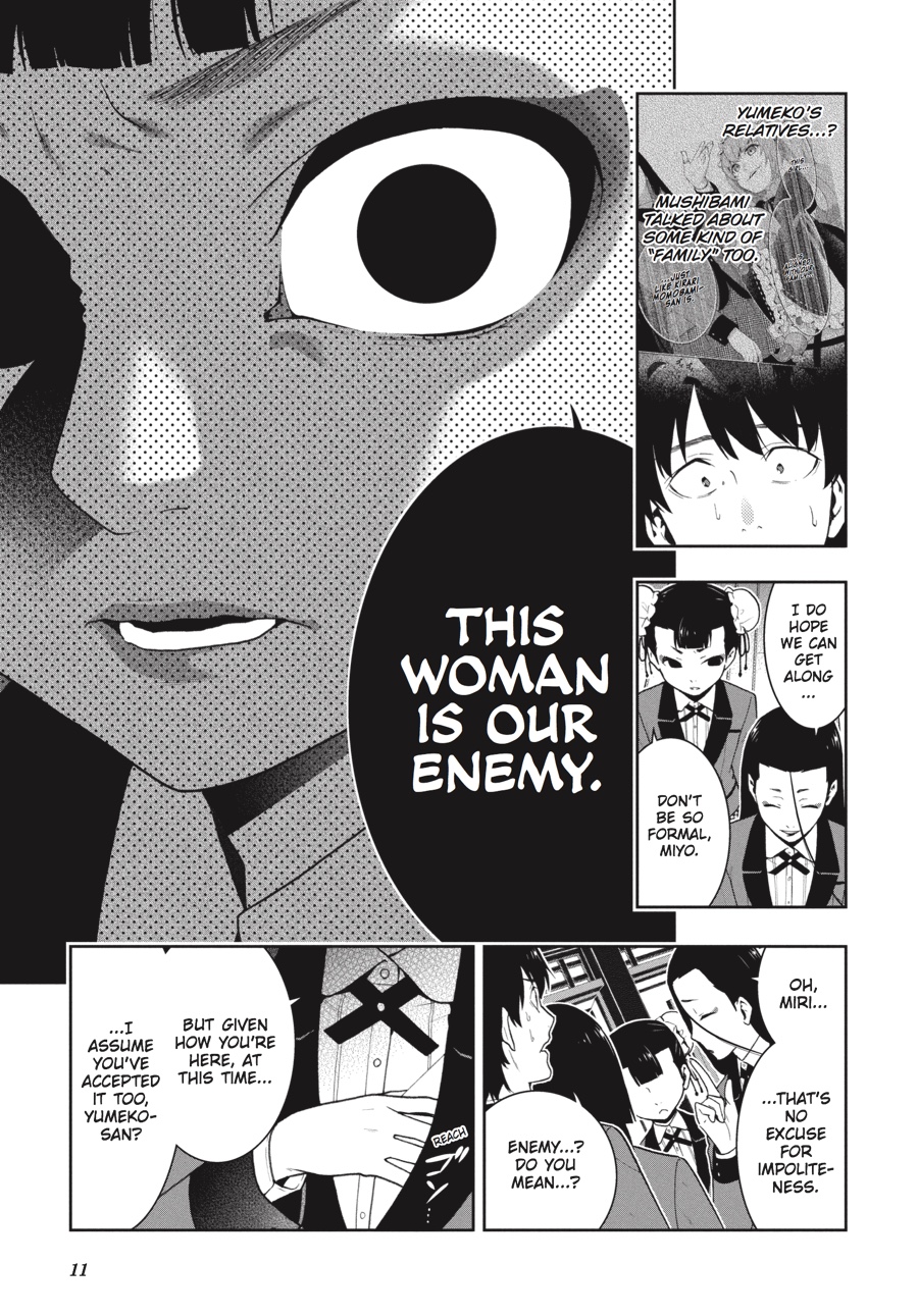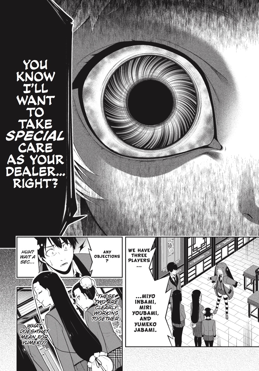 A mysterious invitation has brought Yumeko to her second gamble of the student council presidential election: a two-on-two card game with Suzui against yet more members of the Momobami family! Sisters Miyo and Miri come from a branch of the family specializing in poisons of all types. They hold life and death in their hands-sometimes quite literally. And in this game...VERY literally! With Yumeko's life on the line, will Suzui come out on top or perish with her?!