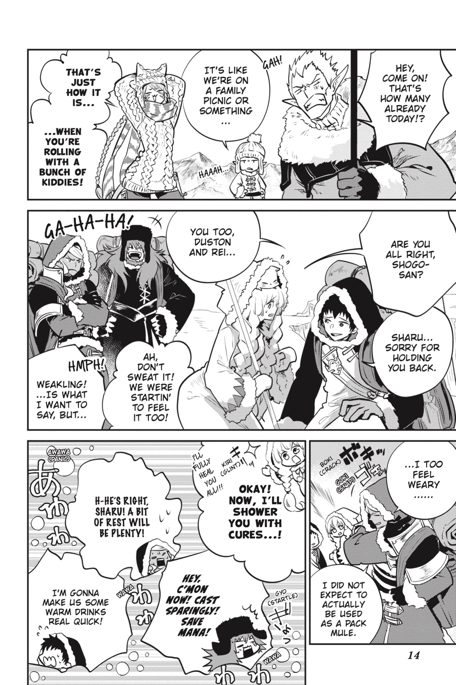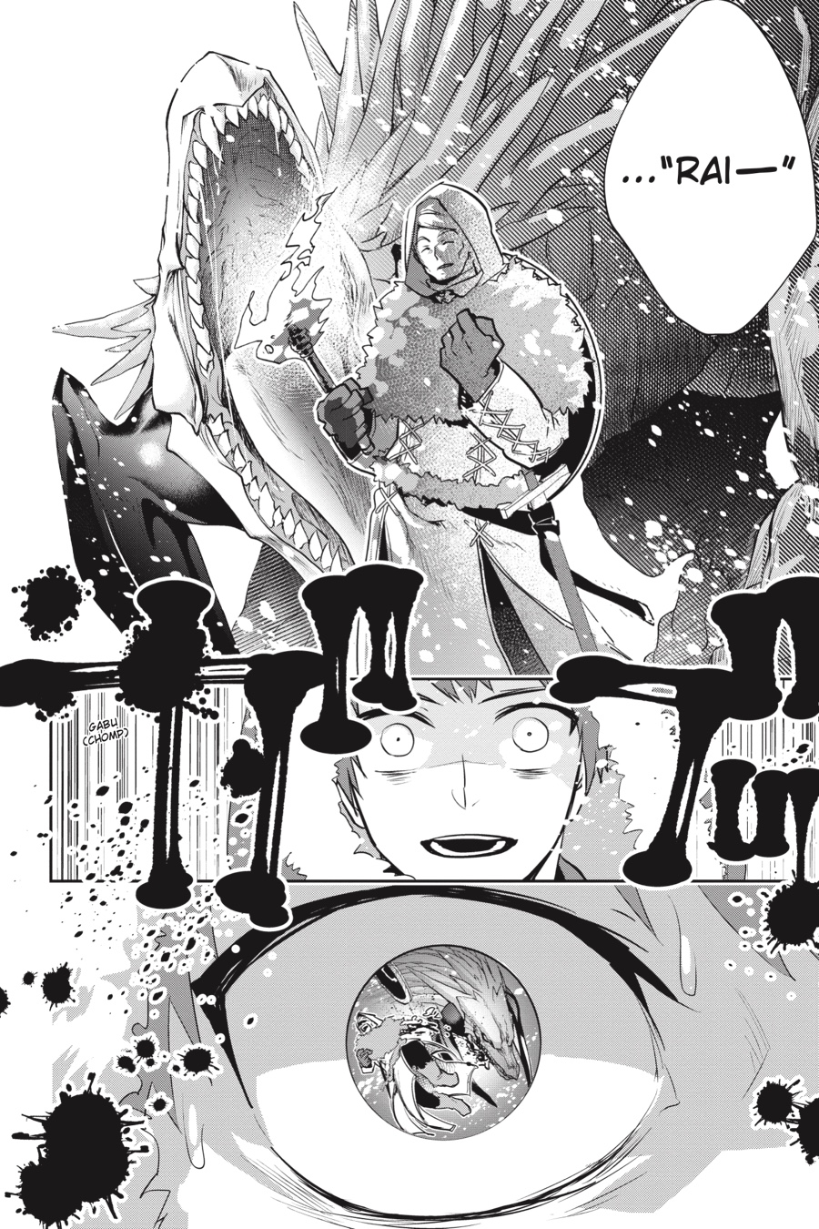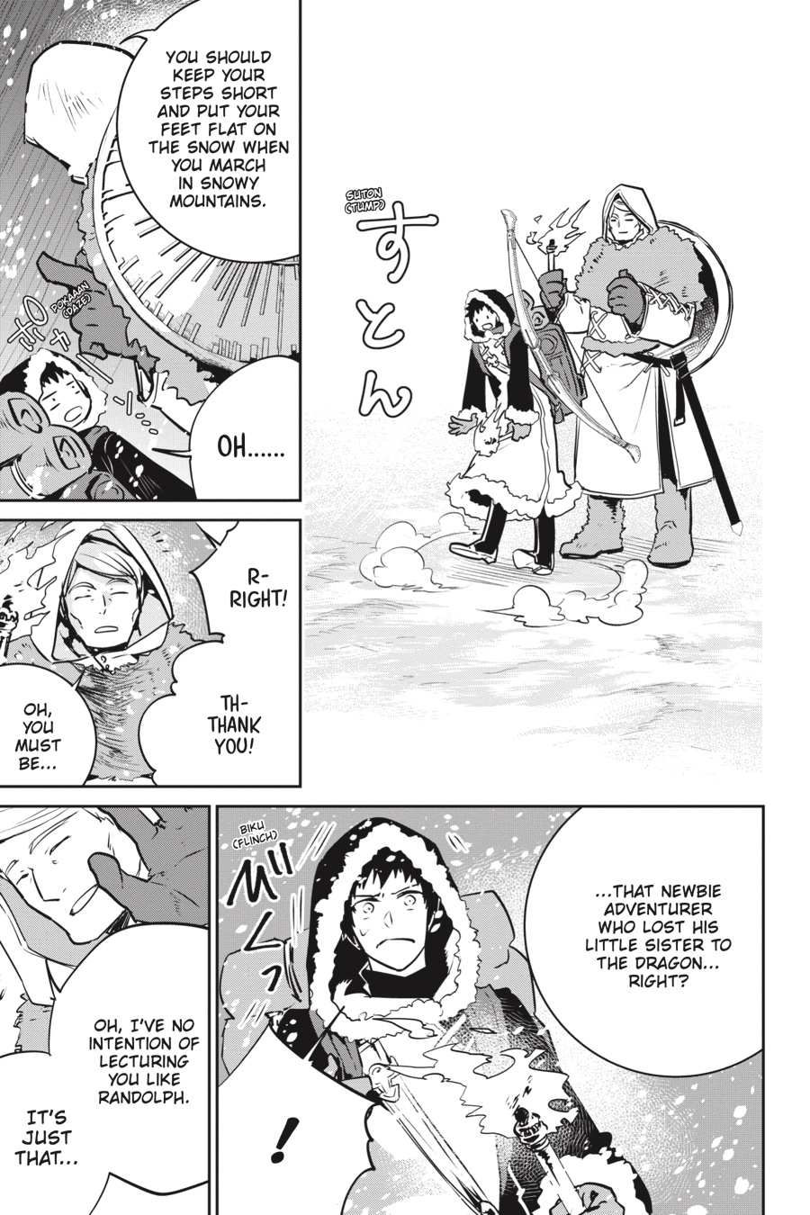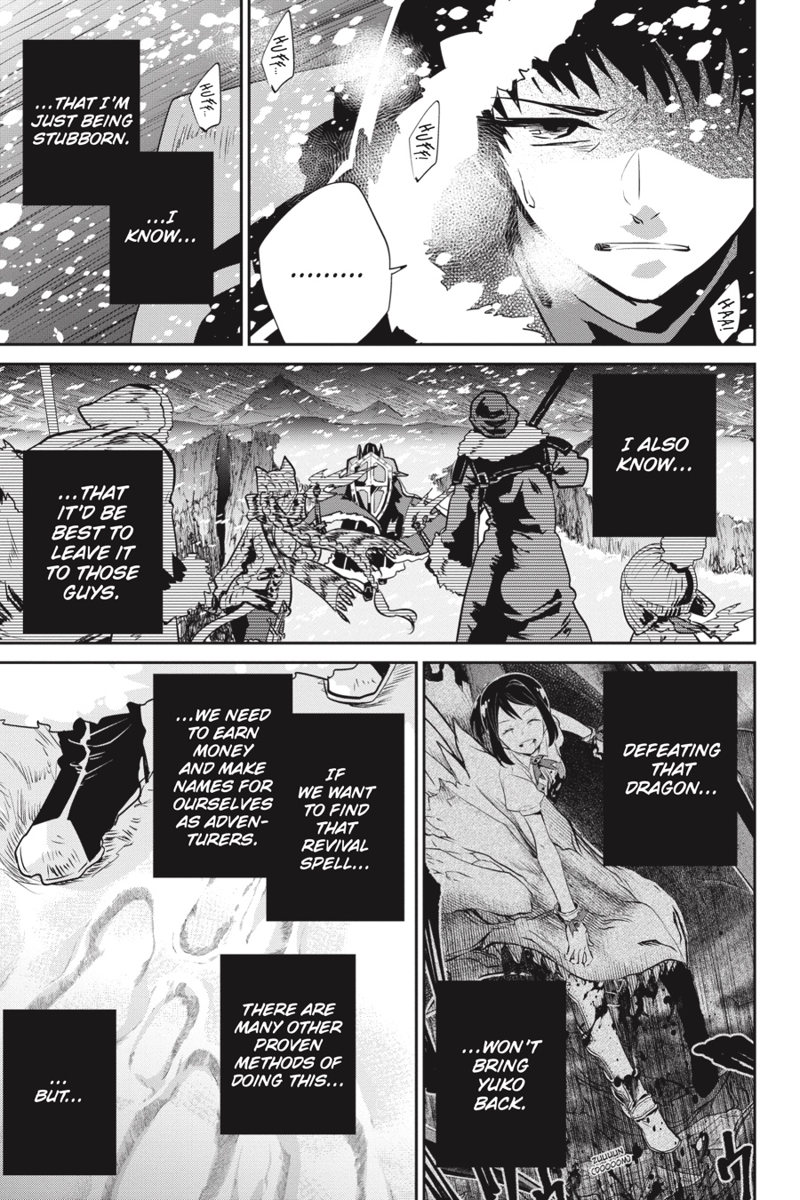 Shogo and his party continue their trek up the mountain. At the summit, the dragon that killed his sister awaits. The group's perseverance has earned them a spot on the raid team, but the respect of Randolph, the raid's leader, is another matter entirely. All is silent... and then suddenly, the dragon is upon them. Throwing caution to the wind, the adventurers pelt the creature with arrows, spells, and strikes, but their efforts are in vain. In an instant, the team is decimated. Randolph orders the few who escape the beast's wrath to retreat, but one man remains, standing tall amid the falling snow...