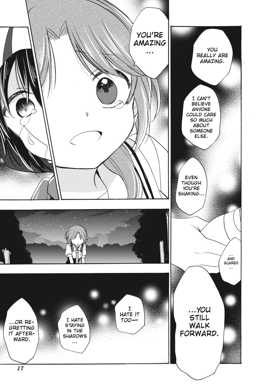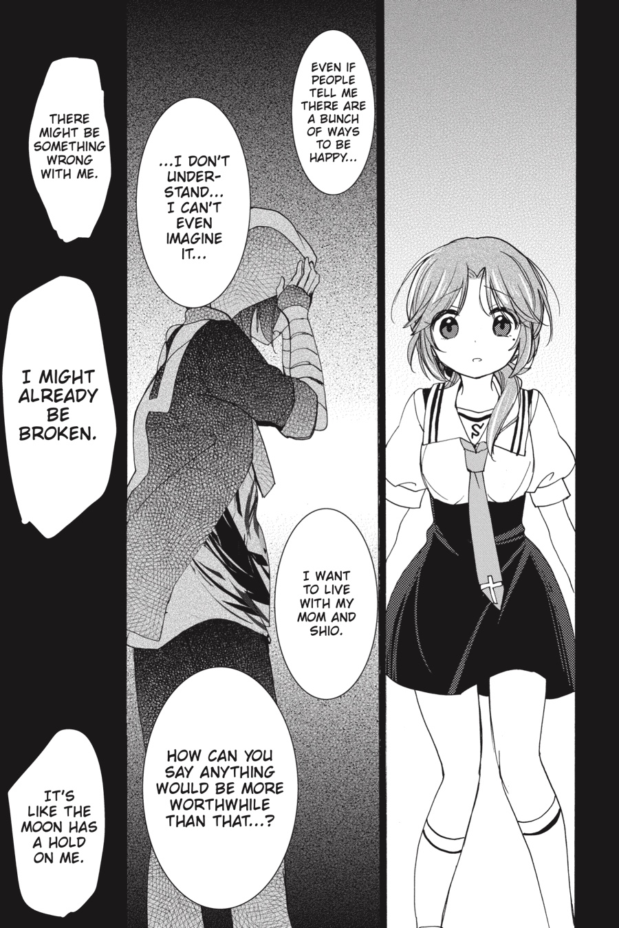 …that you try so hard. But is it really… …for my sake? The one reflected in your eyes… …is it me, or is it you? Don’t dare… ...to call... ...one-sided... ...love... ...love.