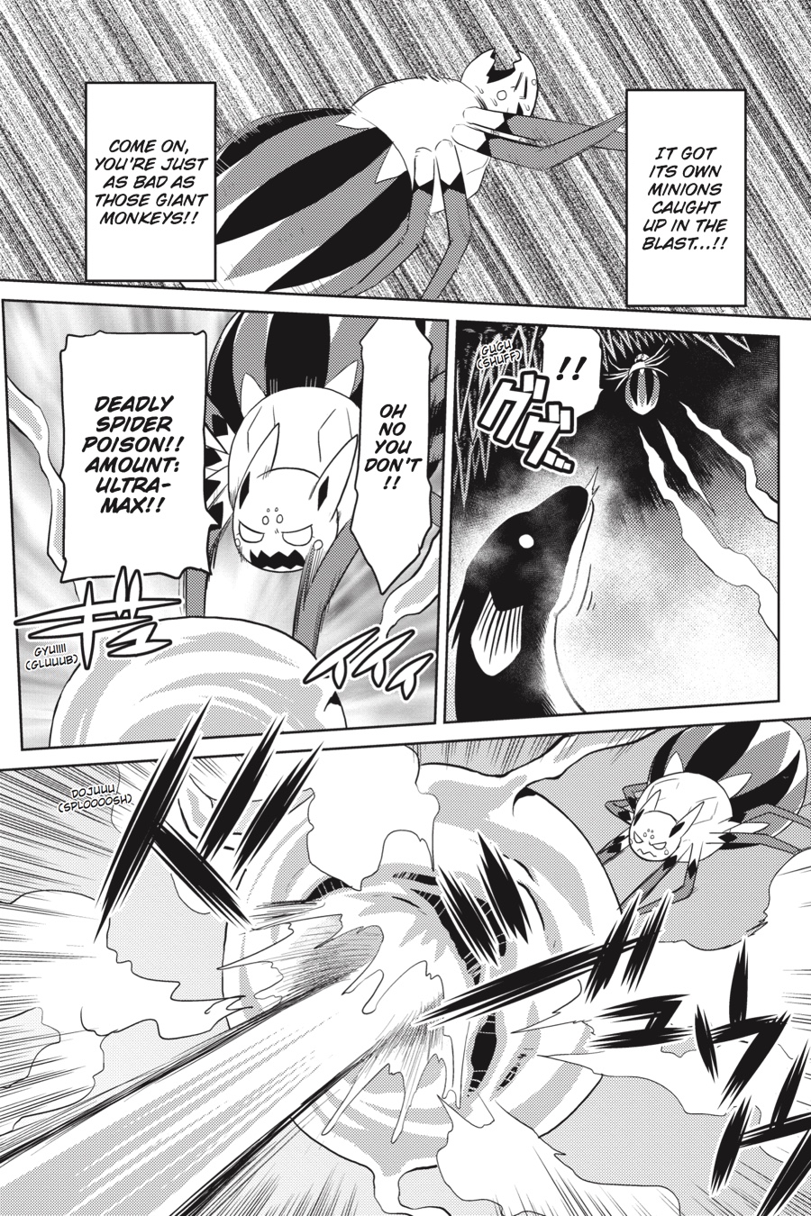 You think you can beat me?! You and what army!? Oh...that army... I thought I was getting the hang of things! Famous last words, right? This middle stratum is filled with fiery magma (with monsters to match!), but I've been holding my own. I may be a weak, little spider, but I've got brains on my side--three of them, in fact! I've got Information Brain to call the shots, Body Brain to do the moves, and my new Magic Brain to figure out...whatever the heck is up with magic in this world, sheesh. Think you can take on me, myself, and I, Mr. Big Giant Scary Dragon?!!