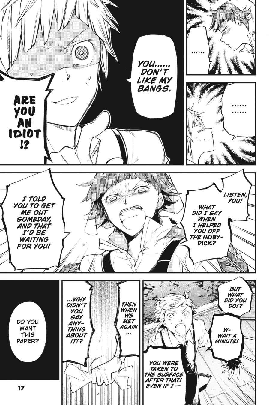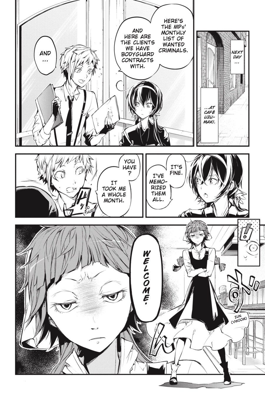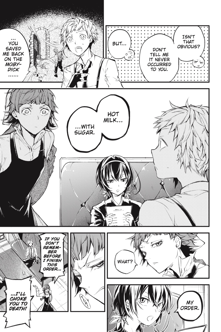 The Armed Detective Agency receives an anonymous request—and it’s asking for Kyouka’s help by name. But during her investigation with Atsushi, ex-Guild member Montgomery keeps mysteriously getting in their way! And as another old for defies death while seeking a triumphant return, a newer enemy—the sinister Dostoyevsky—bares his fangs against both the Armed Detective Agency and the Port Mafia. As he threatens to slowly but surely swallow the dark underbelly of Yokohama, how will this devil of a man alter the playing field…?