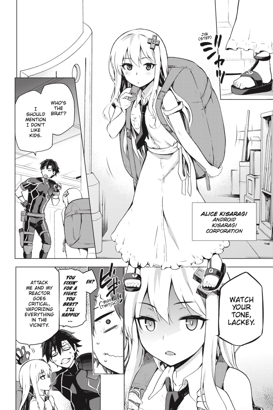 After a career spent slapping down superheroes as an evil minion of the Kisaragi Corporation, Agent Six has his next assignment—invade a fantasy world! With his pluck new partner, the “pretty-girl android” Alice, Agent Six sets out to bring his target planet to heel. What better way to accomplish that than by partnering with the locals?! Alongside Royal Guard Captain Snow, Battle Chimera Rose, and Archbishop Grimm, Alice and Six will square off against demon hordes—even if it’s just a means of taking down the competition! Let the battle to be baddest begin!