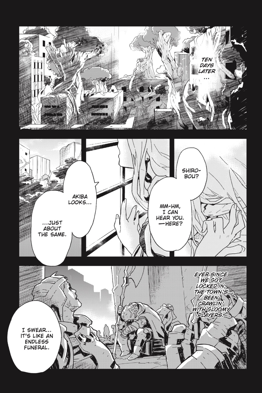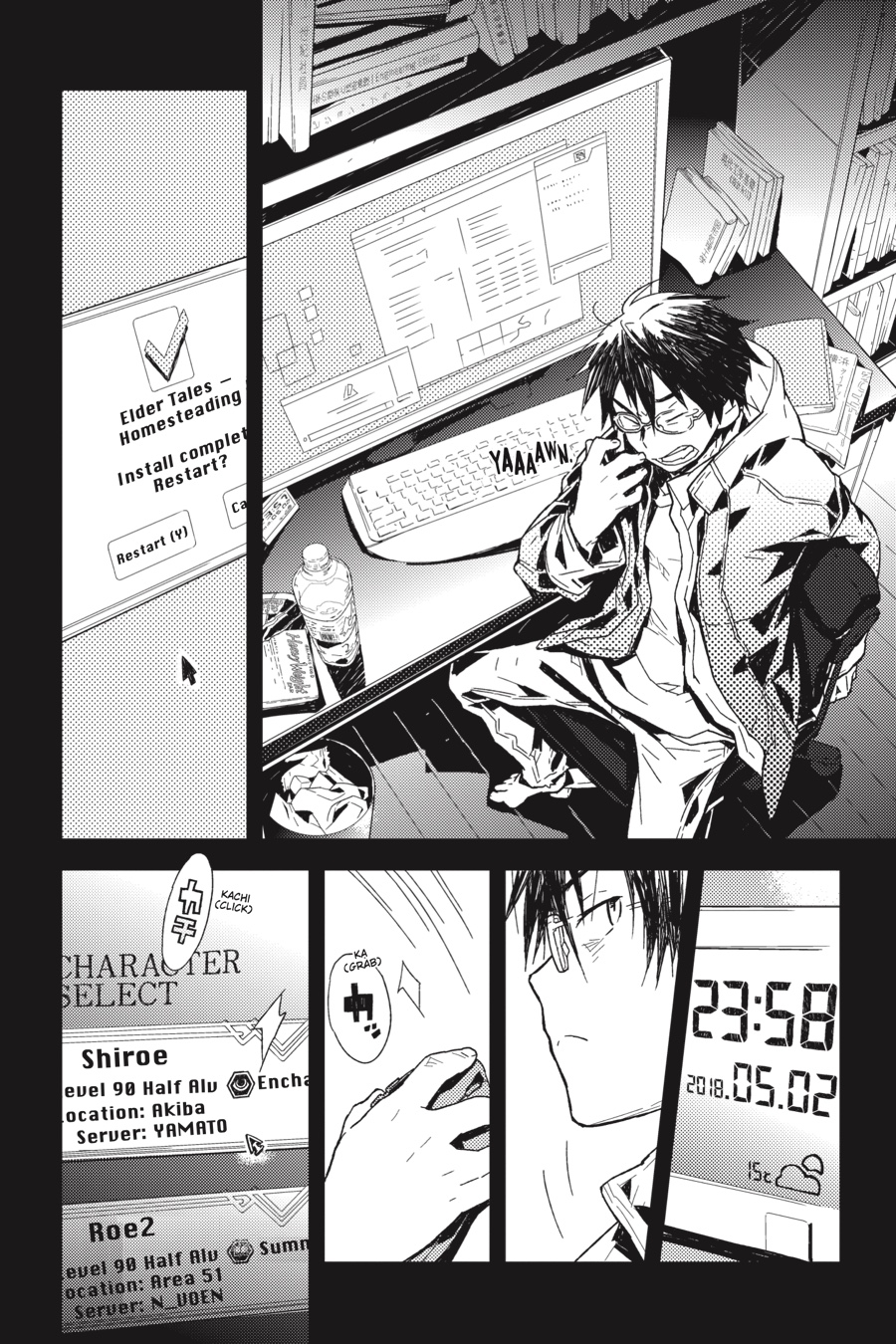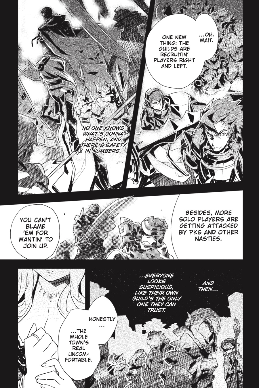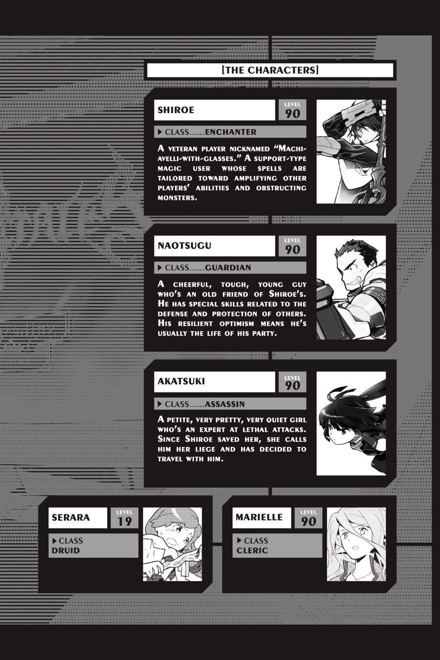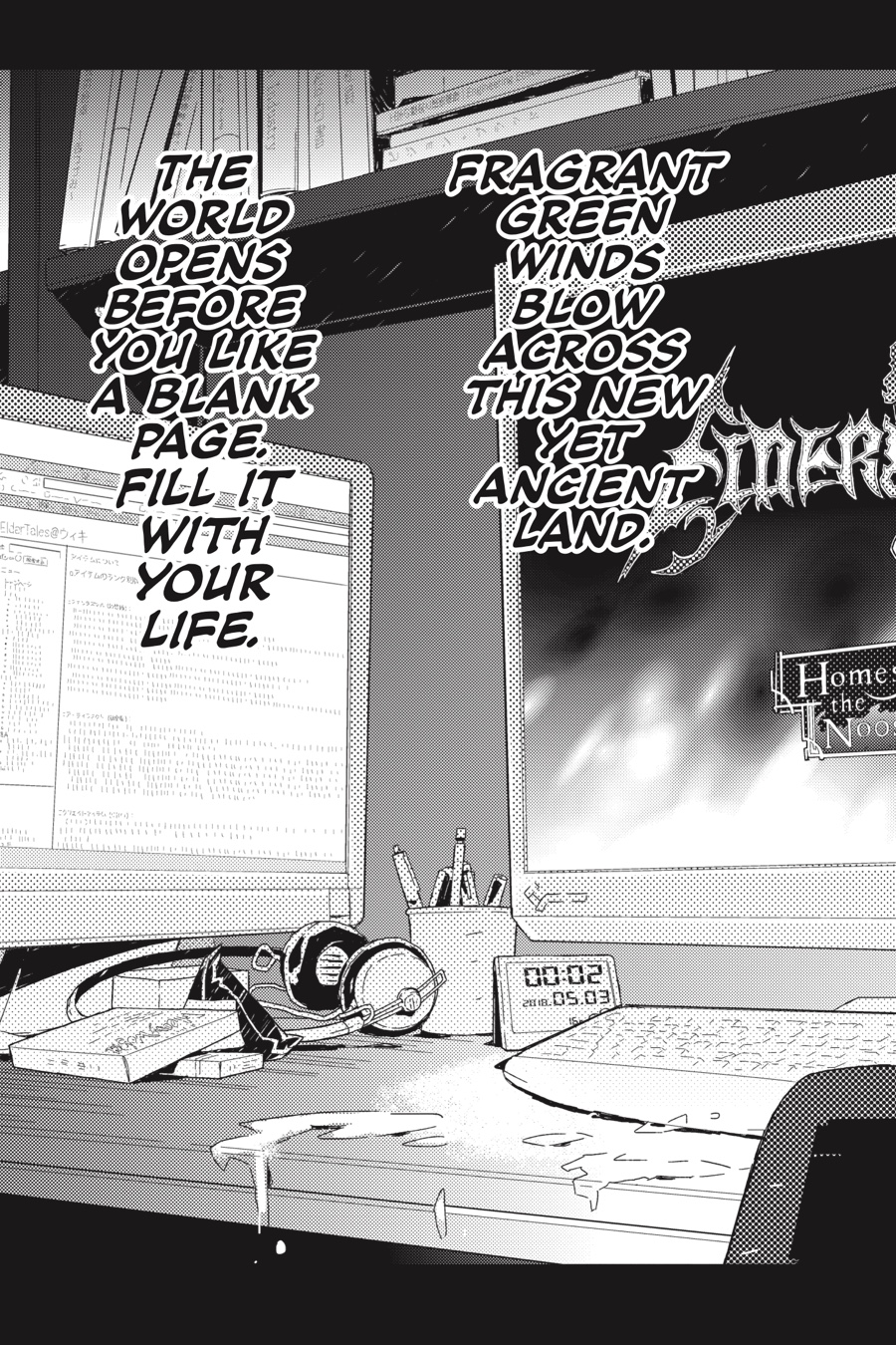 The world of Elder Tales was supposed to be fun for everyone, but ever since the 12th expansion pack came out and trapped thirty thousand gamers within its fantastical confines, it's not much fun anymore! Nobody knows how to return to the real world, the food has no taste, and even death is no escape. Since the change, the world has fallen into lawlessness, and a strong guild is a player's only hope for survival. It's amid these dire circumstances that Shiroe sets off across the virtual landscape with his friends Naotsugu and Akatsuki on an adventure of discovery as they try to understand the nature of their new reality. Illustrator Kazuhiro Hara has adapted Mamare Touno's light novel series into a comic that gamers and manga fans alike won't want to miss!