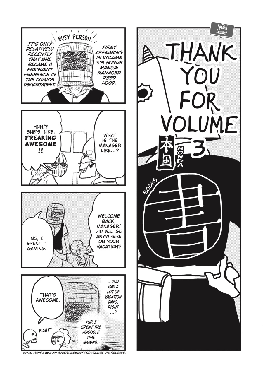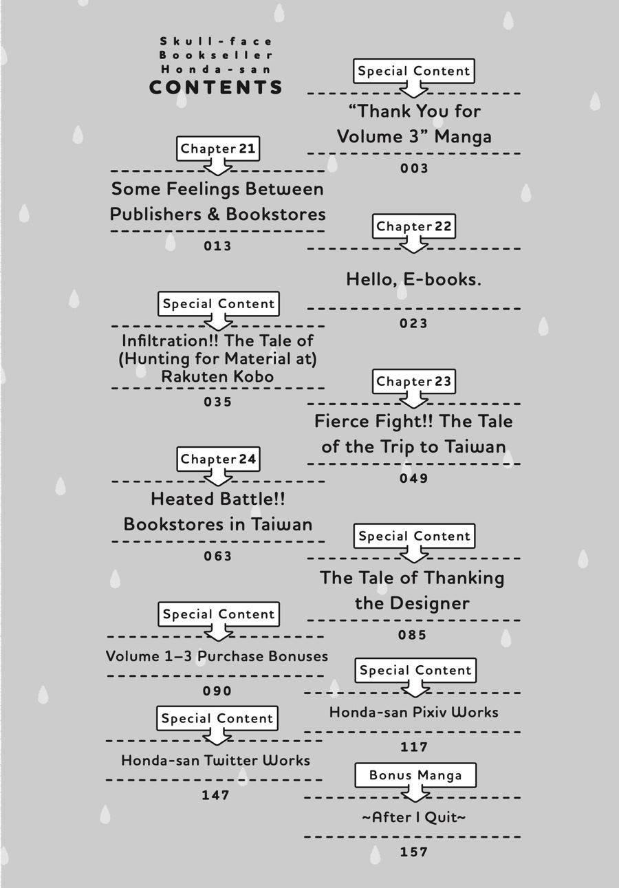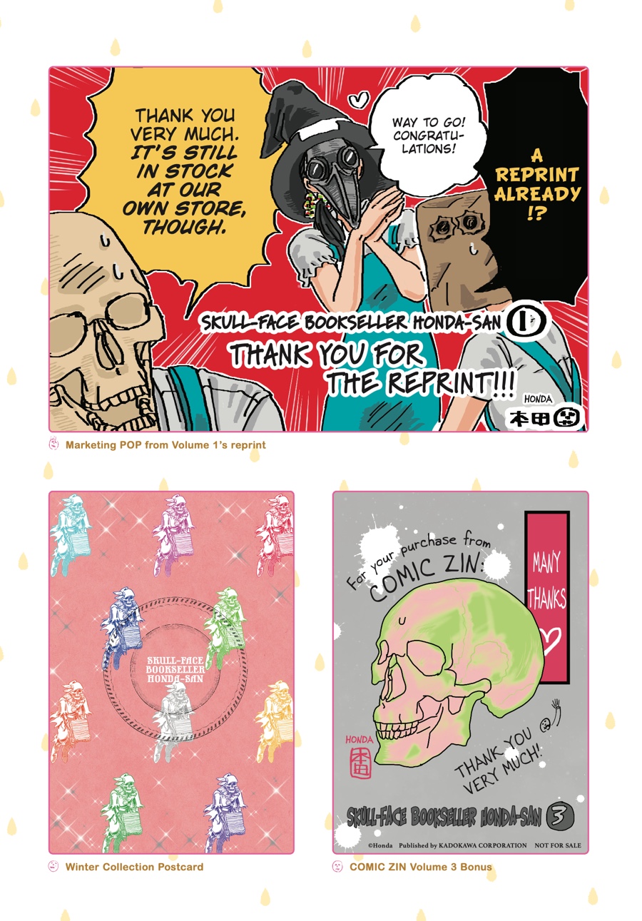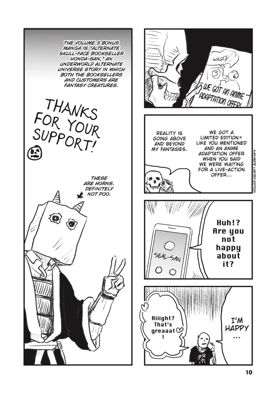 Honda-san is stuck: It’s hard to keep drawing about your bookstore job after you’ve quit! But being a full-time manga artist opens new doors—stories from the publishers’ perspectives, to the nitty-gritty of e-books, and even to Taiwan’s book industry. It’s the final volume of Skull-face Bookseller Honda-san, but the joys and agonies of bookselling last forever!