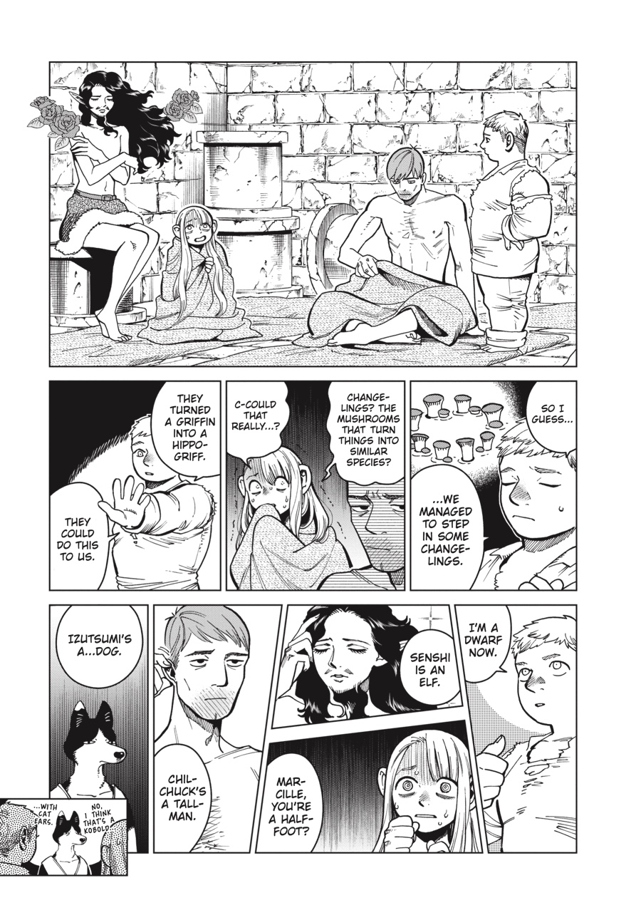 In the dungeon, one false step can be the difference between life and death…or elf and dwarf?! The changeling mushrooms have done their work, leaving Laios and company radically altered, transformed from one race to another! The journey into the heart of the dungeon was never going to be easy, but with new senses, strengths, and statures to contend with, the mission seems more daunting than ever. Thankfully their sense of taste doesn’t seem to have been affected!!