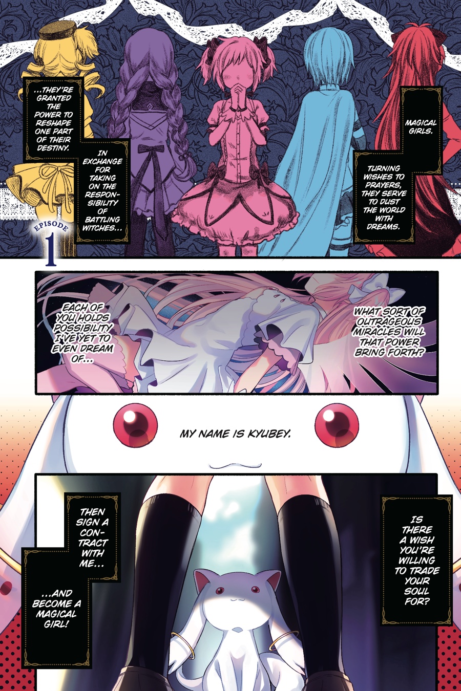 Recurring dreams of an unfamiliar girl draw Iroha Tamaki to Kamihama City, the last place she visited before the dreams began. Her only clue is a tiny Kyubey, which she aims to catch in the hope it will provide answers about the dreams and the heartache she feels each time they fade. Still, even as an experienced magical girl, the witches in this city are far more powerful than anything she’s encountered back home. Can Iroha survive in Kamihama long enough to uncover the secrets within? A new story unfolds in this manga adaptation of the mobile game!