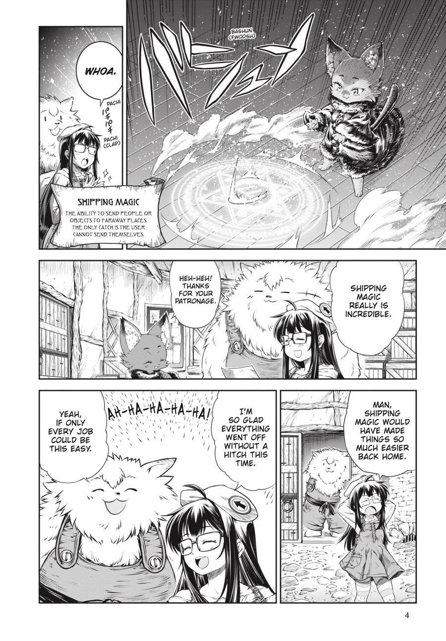 Mika’s massively popular magic-focused event “Magiket” has grown again, continuing to bring her spells and mages from around the world—and also boatloads of work…But despite her Market’s ever-increasing reach, a surprise encounter comes from outside Mika’s purview! The last thing she expected was to meet another Japanese visitor—could this transplant also be seeking a way home?