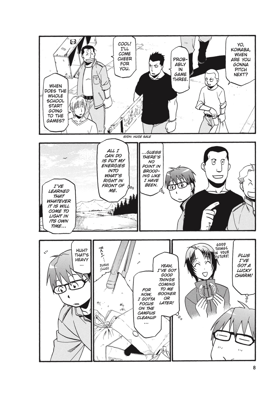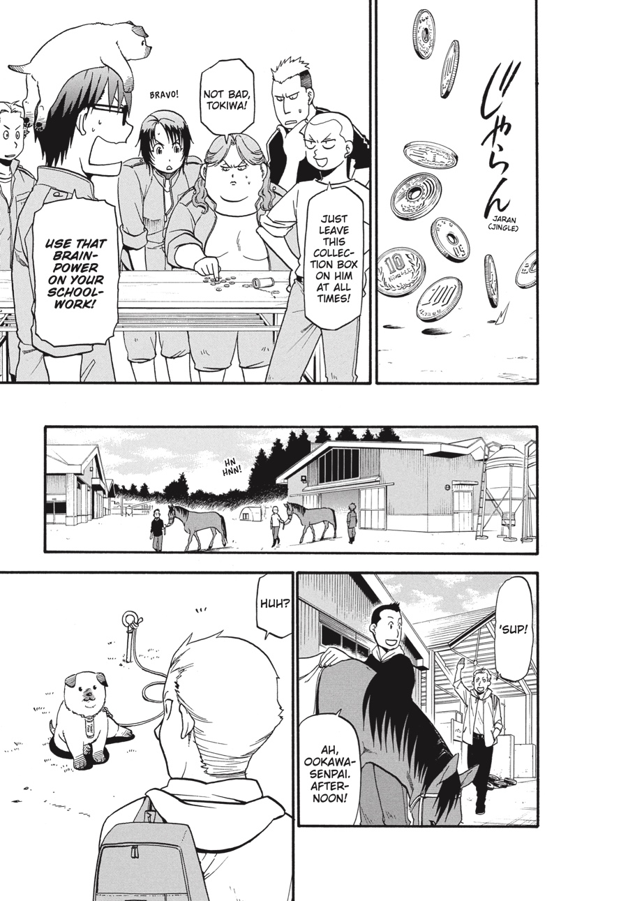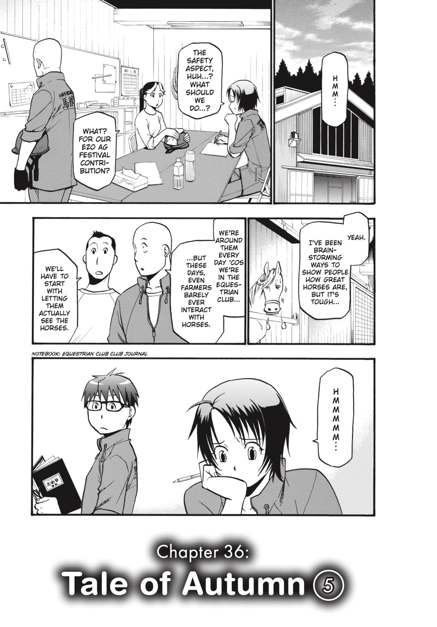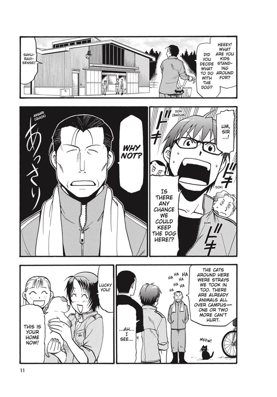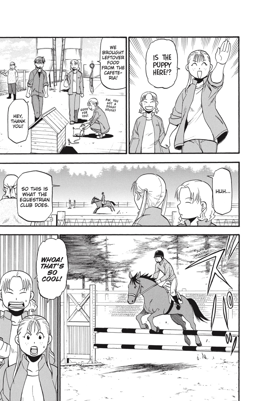 The second Ezo Ag cleanup of the year yields a surprise even greater than the first! Once again, Hachiken makes the find that has the whole school talking-and fawning-when he uncovers an abandoned puppy in a rubbish pile. After a bath and blow-dry, the pup takes up residence in the stables as the unofficial mascot of the Equestrian Club. But with all the attention, the new "Vice Prez" threatens to usurp the authority of his master! And no one hates losing more than Hachiken!!