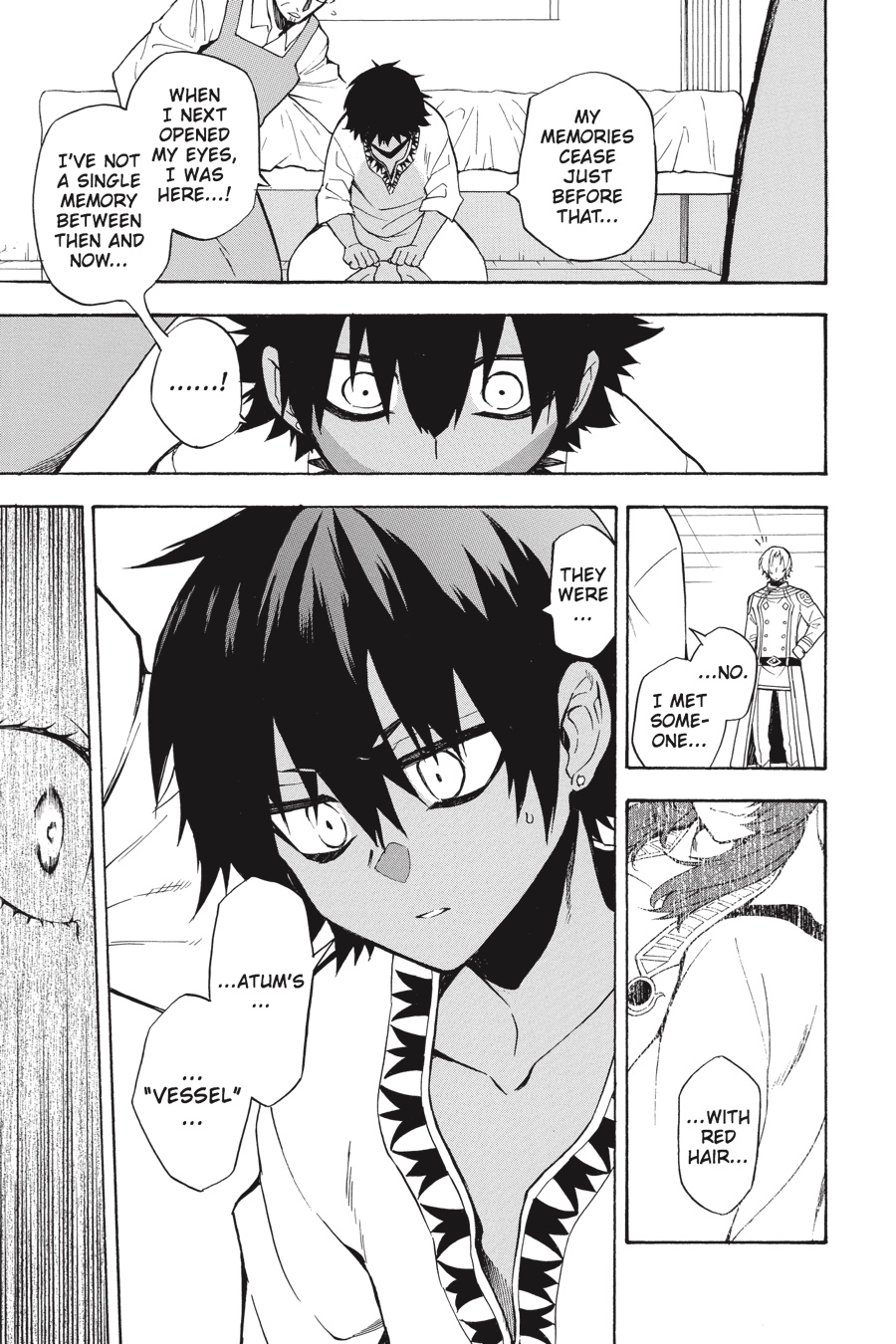 After the traumatizing events in the Amen Priest Nation, Im confesses his true feelings toward Djoser to Hinome-even though it could cost him his newfound friends. Then, Im seeks out the god Thoth in the Temple of the Moon to learn the secret behind his own origins. What fantastic fate connects Thoth, Apophis, and Im across thousands of years?
