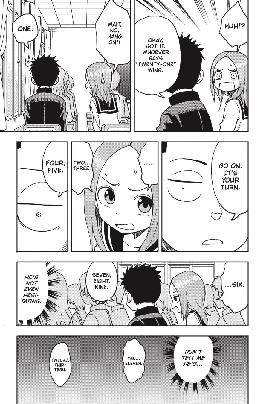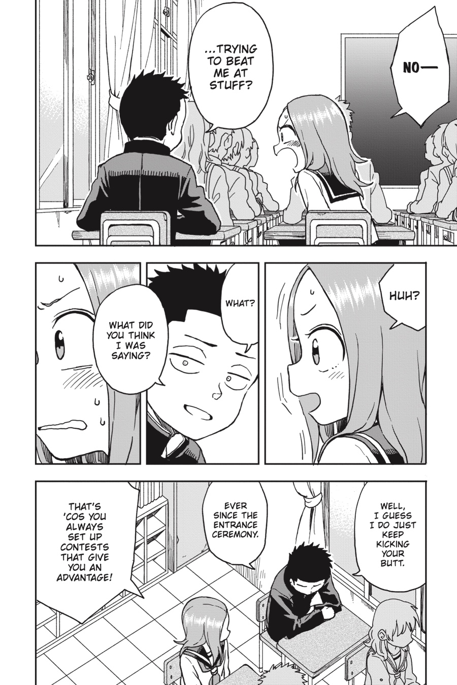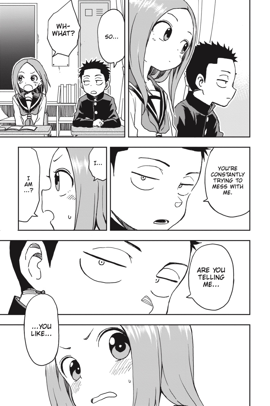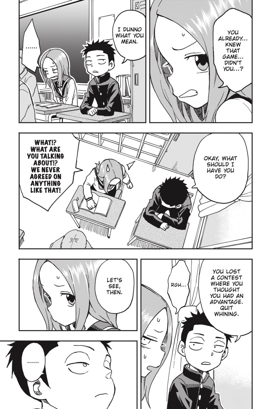 The day of the sports tests has arrived once more, and this time, Nishikata is determined to achieve victory over Takagi-san for sure! After last year’s disappointing defeat, he’s spent every spare moment training for his chance at revenge! If he’s able to come out ahead, Takagi-san will be forced to stop teasing him…which is what Nishikata wants, right…?