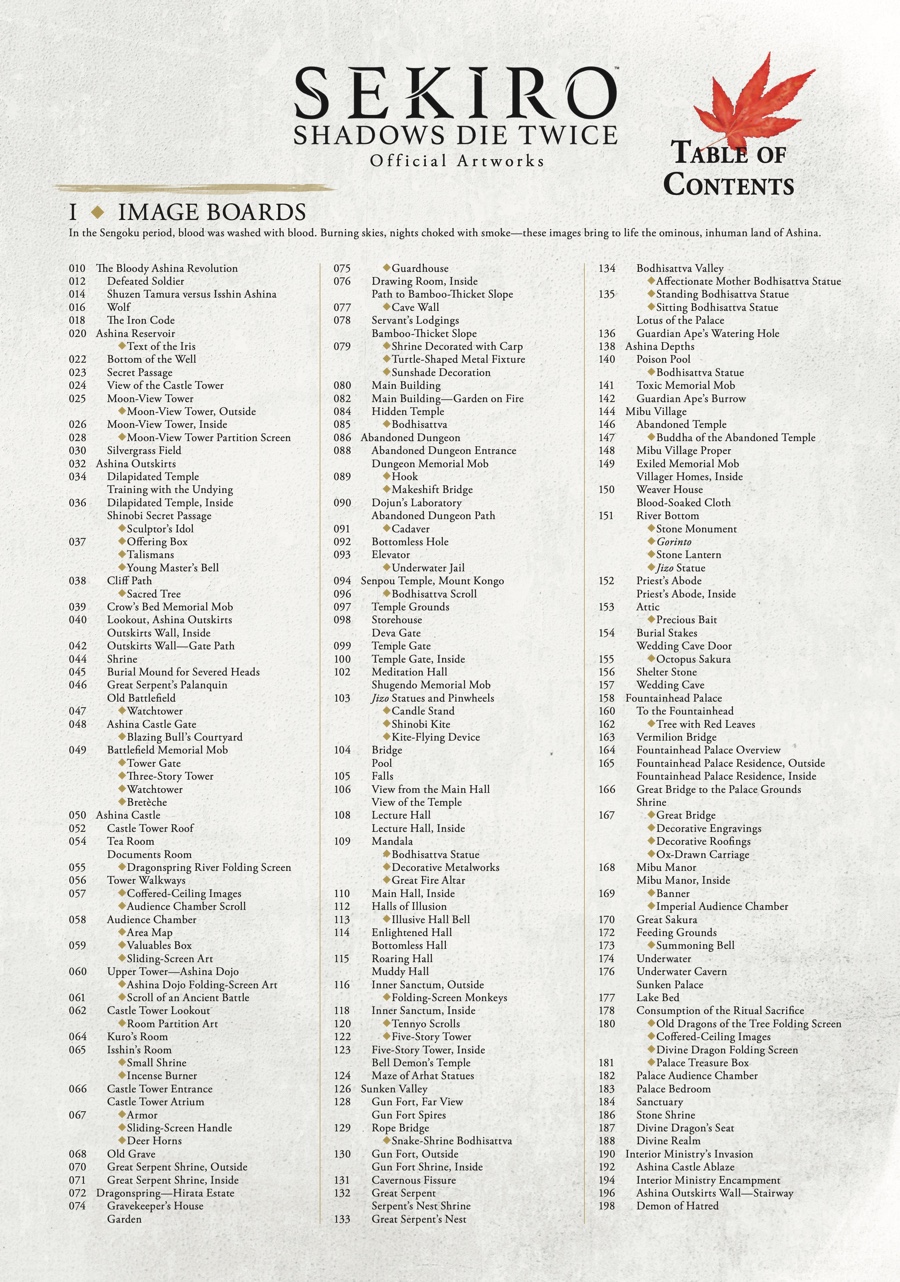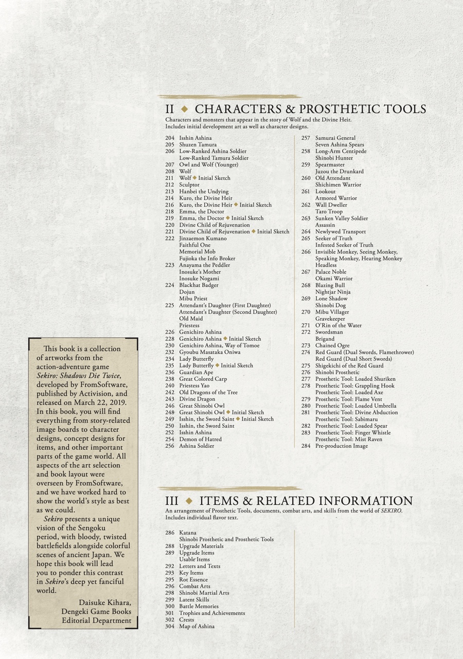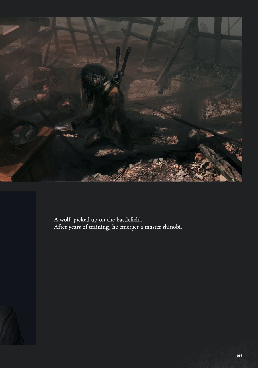 Experience SEKIRO's unique take on the blood-soaked history of Japan’s Sengoku Period with over 300 pages of storyboards, character designs, and concept art!
