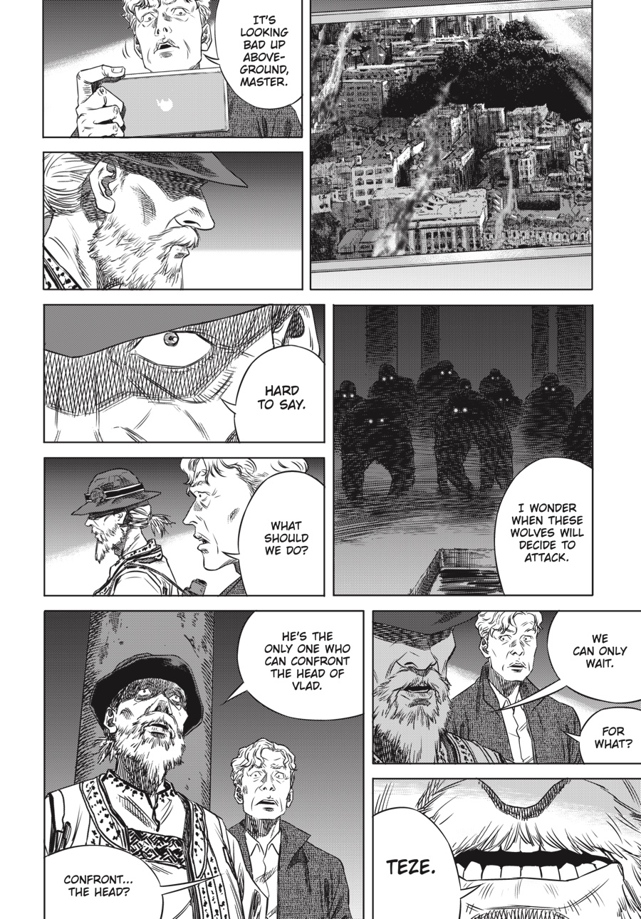 Amid accusations of biological warfare and conspiracy, the world’s political leaders clash over how best to handle the wolf virus crisis, even as new attacks hit major cities around the globe. Much of the Wolves’ activity is centered in Turkey, where humanity’s long history of conflict with the Wolves first began. As the final confrontation with the Wolf King draws near, Teze and his fellow Children of Saturday turn to the past for answers and understanding-anything that will give mankind a hope of surviving the destructive bloodlust of the Wolves!