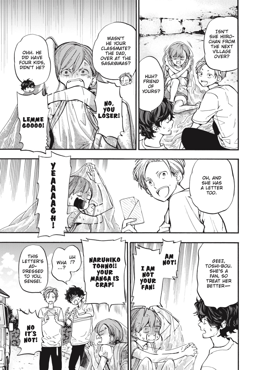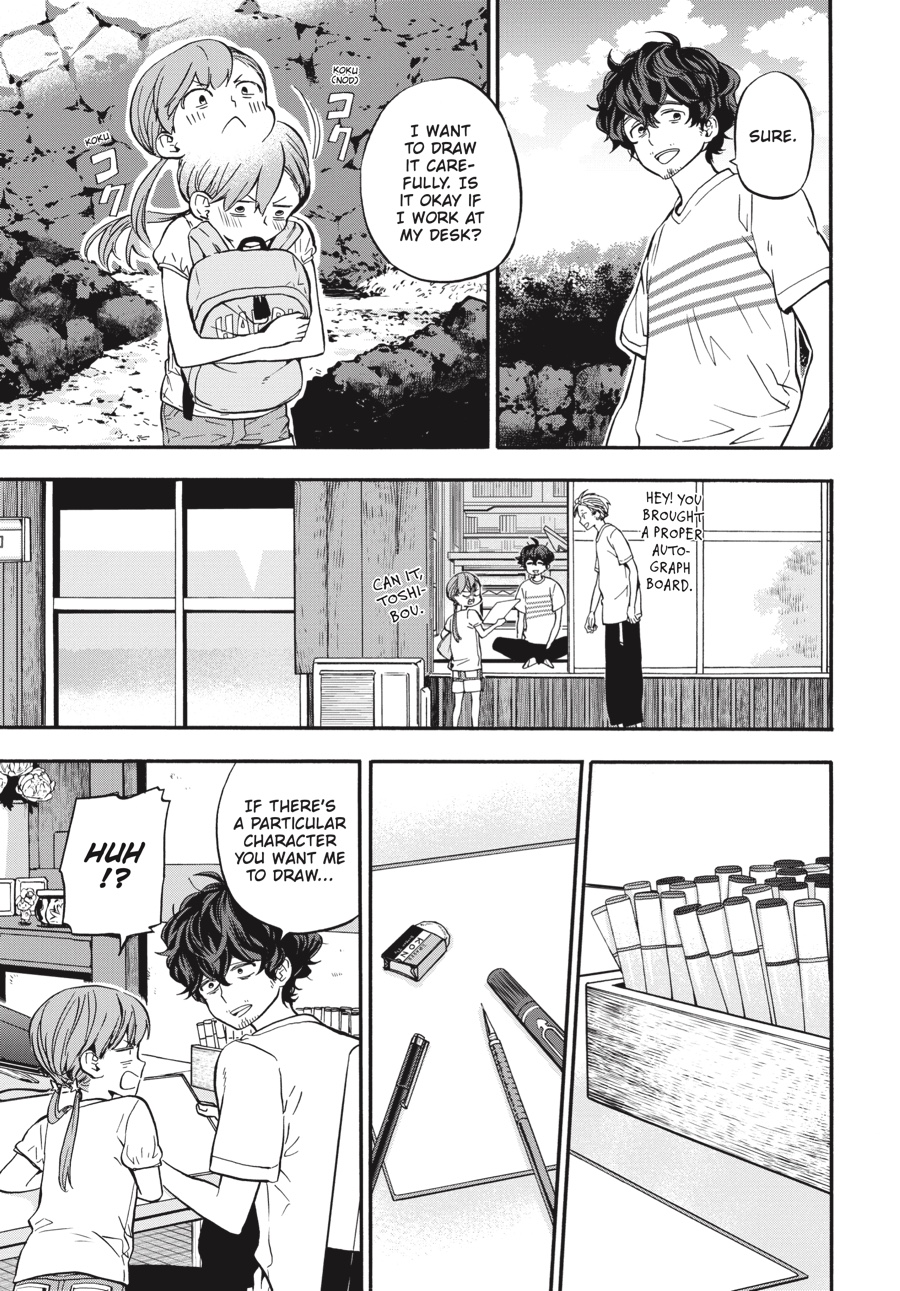 After ten years of trying to hit it big in the manga world, Naruhiko’s latest series is taking off! Still, he can’t help but wonder if he really deserves the success. So when the time comes for him to leave the island for a book signing in Tokyo, he can’t help but worry! At long last, he gets to meet some of the fans who have supported him for years… Surely he won’t slip up along the way?