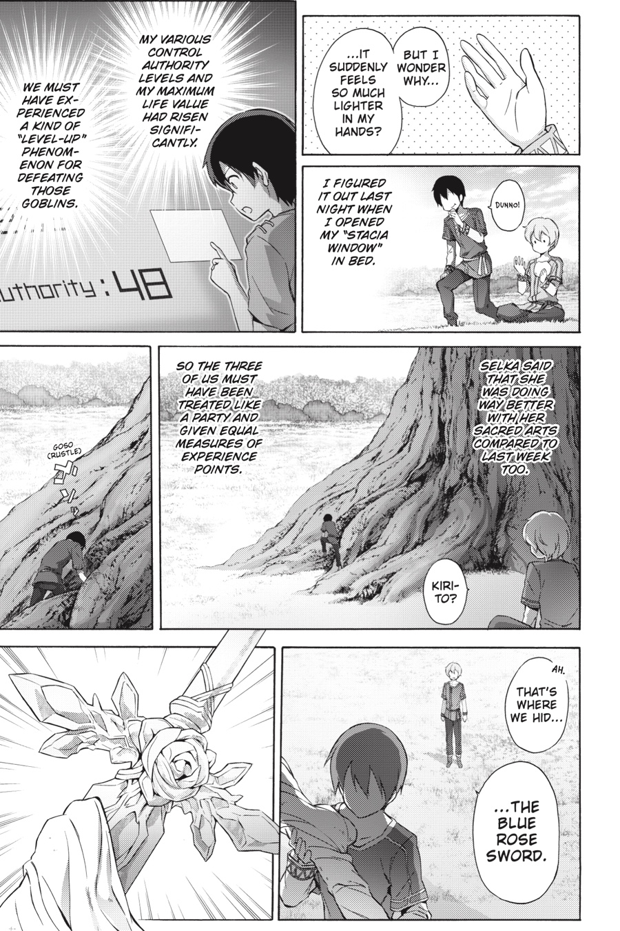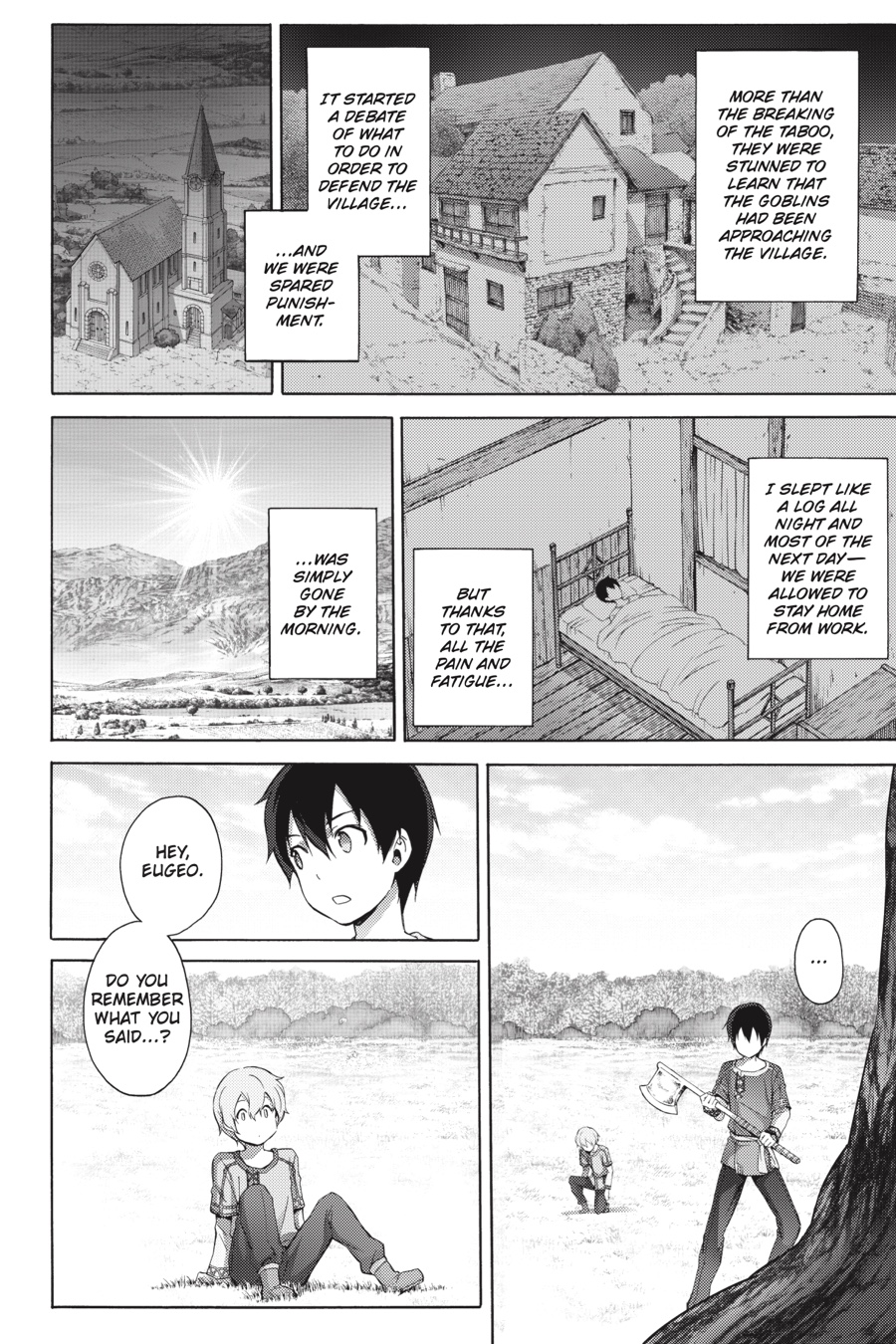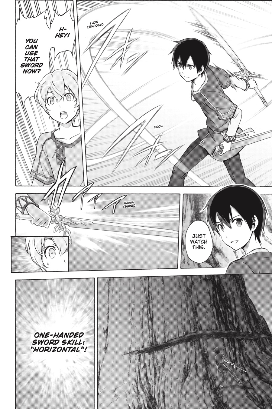“This might be a game, but it’s not something you play.” - Akihiko Kayaba, Sword Art Online programmer After Kirito and Eugeo’s brush with death in their fight against the goblins, it’s back to the Gigas Cedar, the massive tree that Eugeo’s destined to hack away at for the rest of his days. But Kirito feels a lot stronger now-even the Blue Rose Sword feels lighter in his hands. As he approaches the fearsome Gigas Cedar with a new “ax” in hand, he realizes that felling the giant just might be within the realm of possibility…