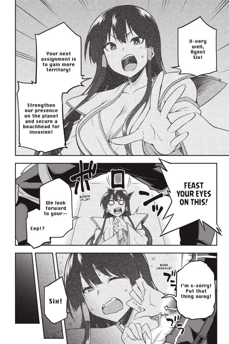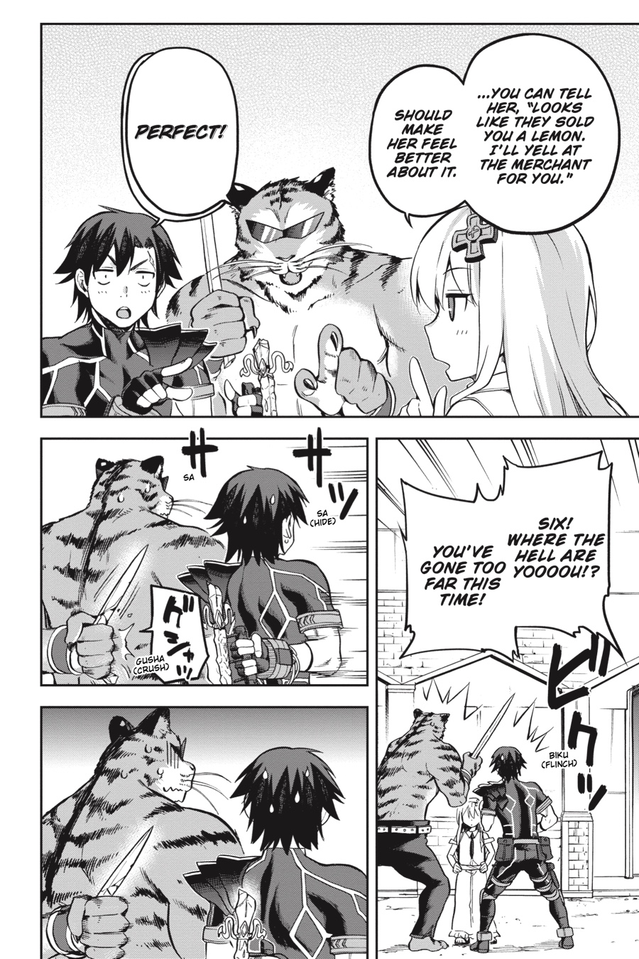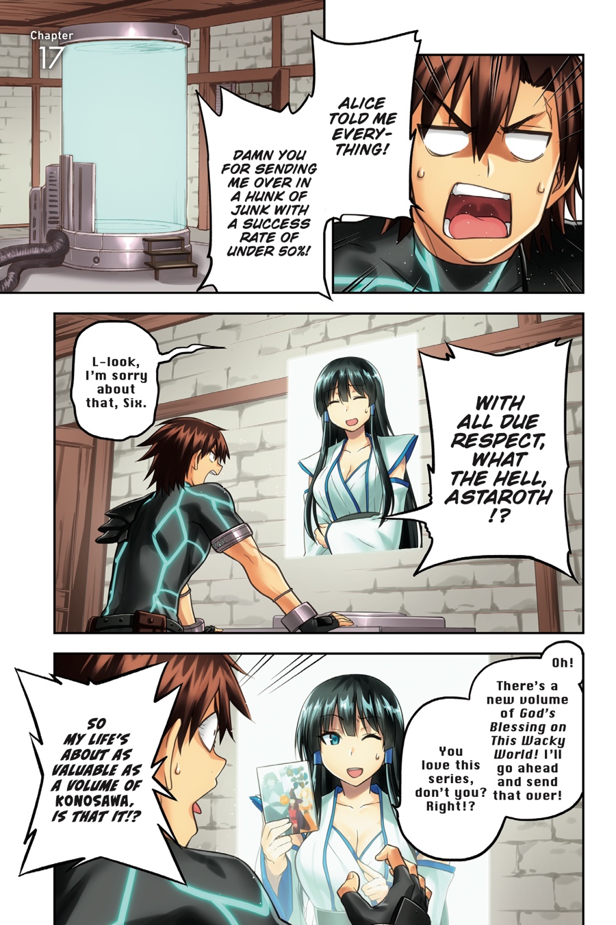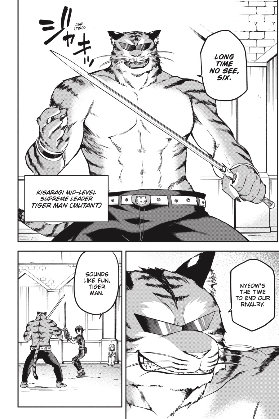 A month has passed since the cease-fire with the Demon Army, and now that the teleporter is online, Kisaragi has sent a mutant to help the invasion get back on track. But the evil organization’s plans are derailed once again when Six is dispatched on a diplomatic mission to relieve the kingdom of Grace’s terrible drought-a problem he caused by changing a rainmaking artifact’s password into something that can’t be printed on the back of a book. Is Six really the right man for the job…?