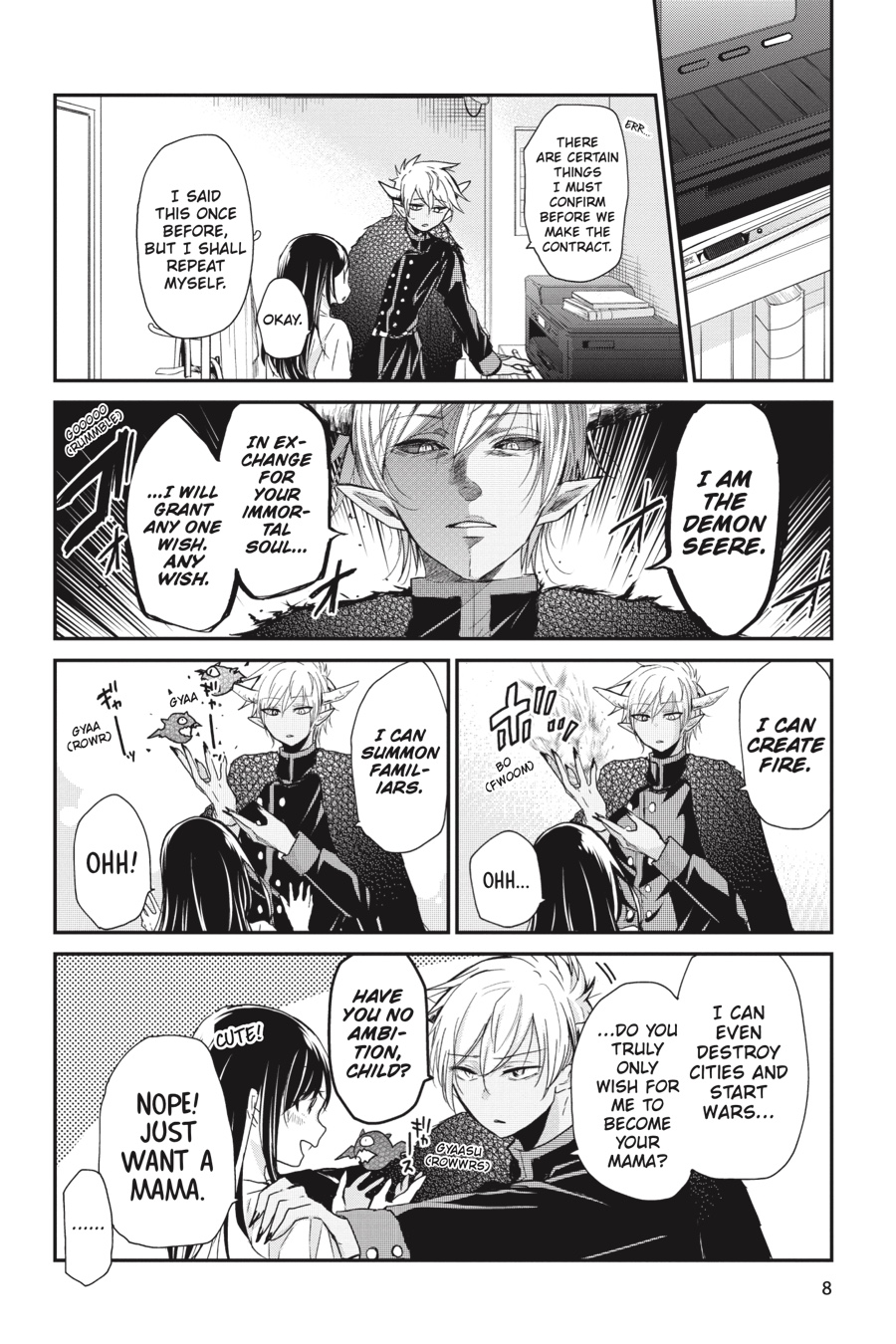 For centuries, the demon Seere has prided himself on his work-granting the wishes of those he contracts with. Whether it’s slaughtering their enemies or obtaining wealth beyond measure, anything is possible with his powerful magic. But Seere’s latest summoner, Sakura Masuda, is unlike any he’s dealt with before. Namely, she’s only in fourth grade, and her wish is…for Seere to become her mama! Well, if that’s what she desires, then that’s what he will deliver-by becoming the greatest mama ever!
