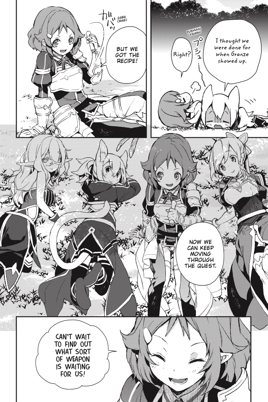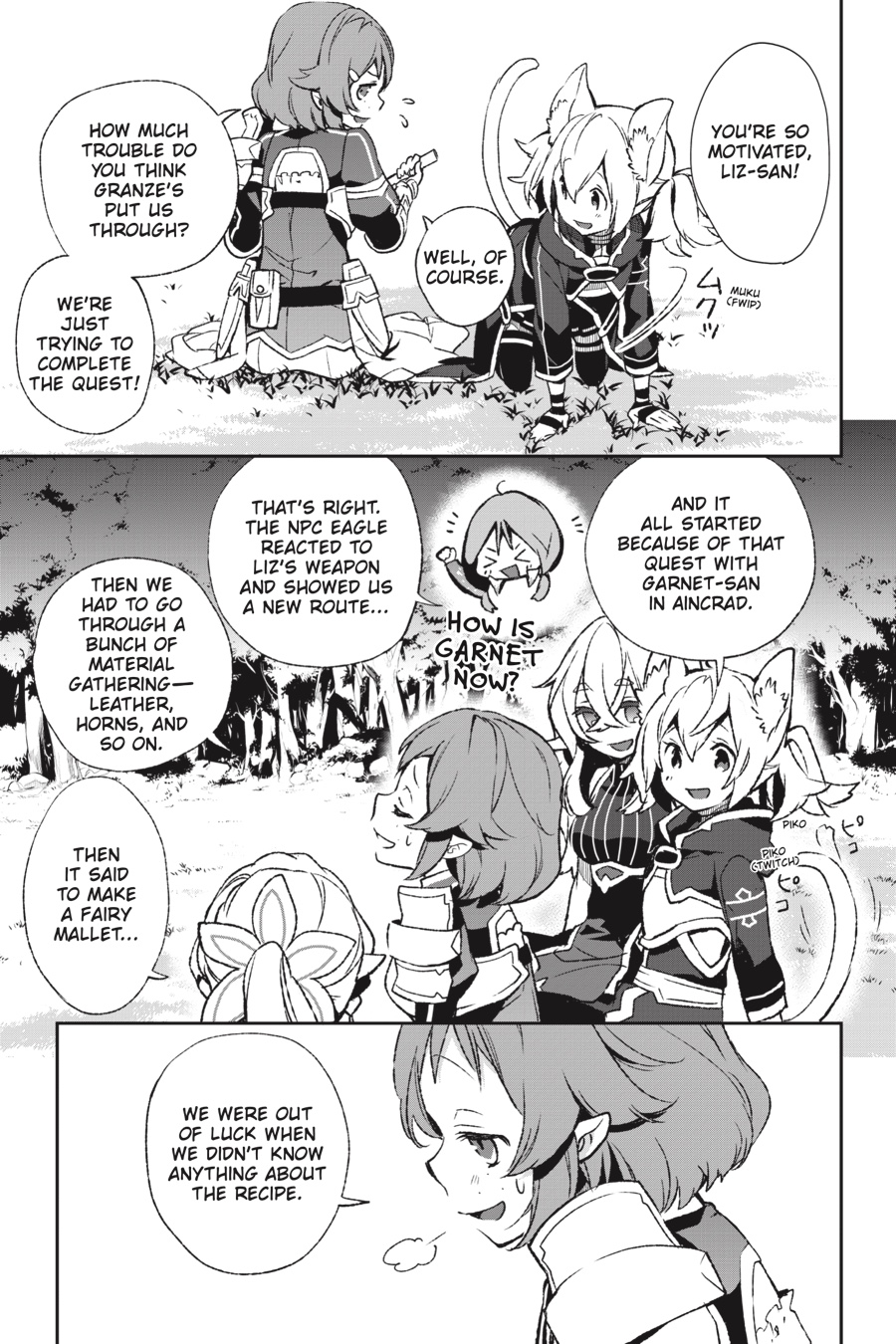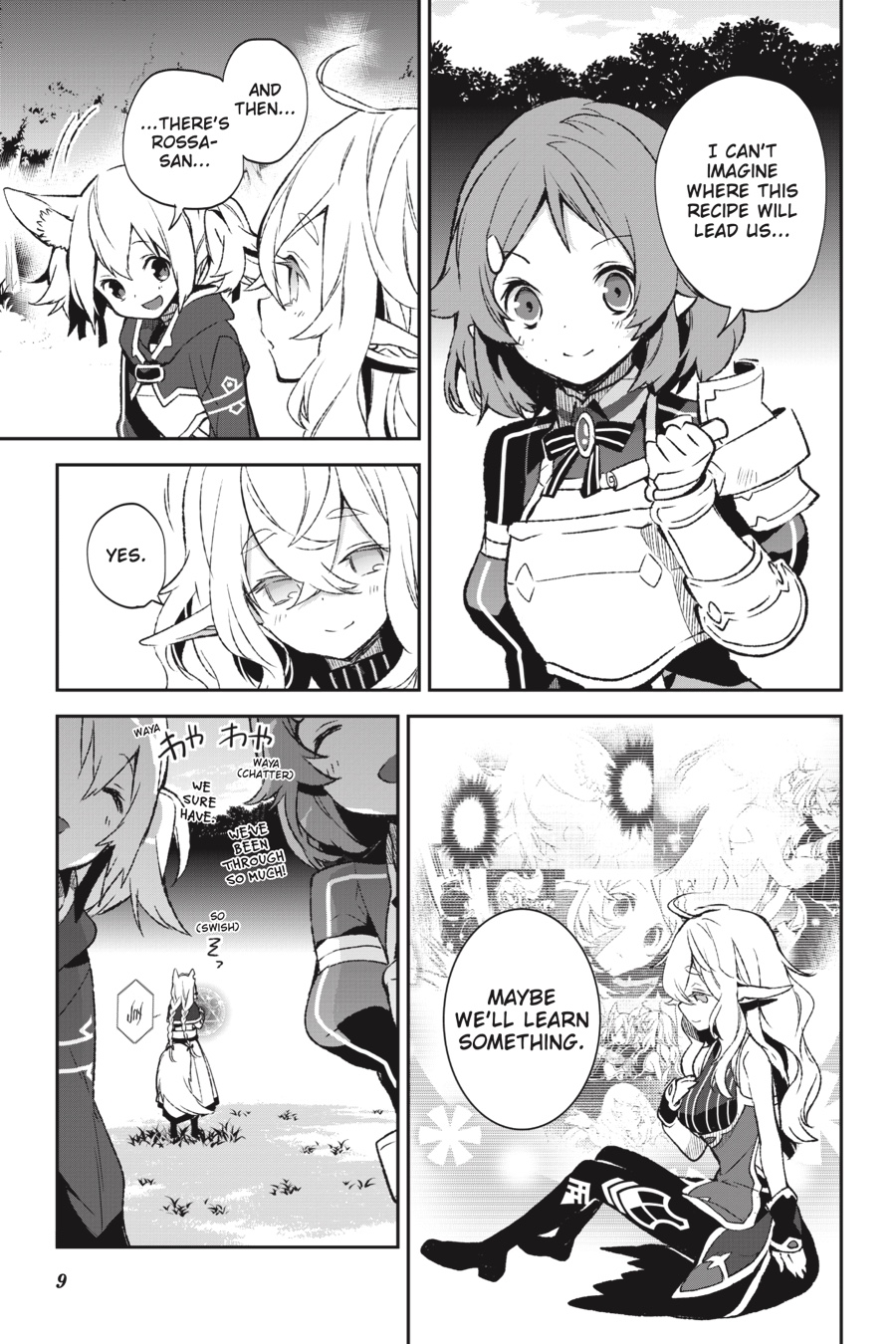 To steal the recipe for the Fairy Mallet and complete their quest, Silica and company infiltrate the Elves and Shoemaker guild. But Granze, the guild’s leader, is not so easily outwitted-using the Gjallarhorn, a legendary instrument that summons a veritable army of soldiers to her side, she launches her assault! What’s more, the soldiers are created from old SAO data, and their leader bears an uncanny resemblance to the Black Swordsman...