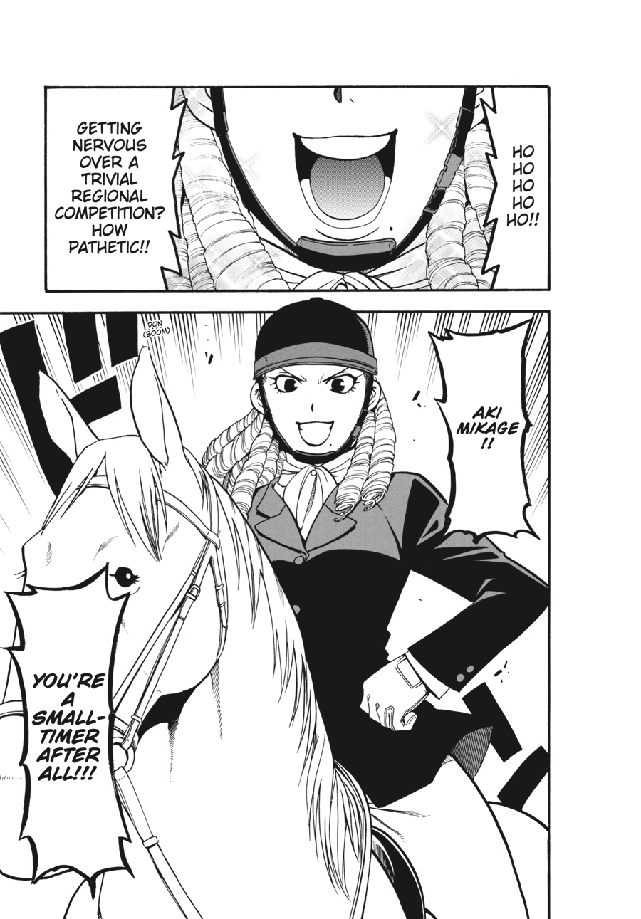 To connect hearts with partner who cannot speak...and then leap through the air to witness a view never seen before-that is what horseriding is all about...! If it's just as a test, it'll be fine. Except it isn't! With his first equestrian experience happening in competition, the curtain falls on Hachiken's debut. To face off against others is to face oneself.