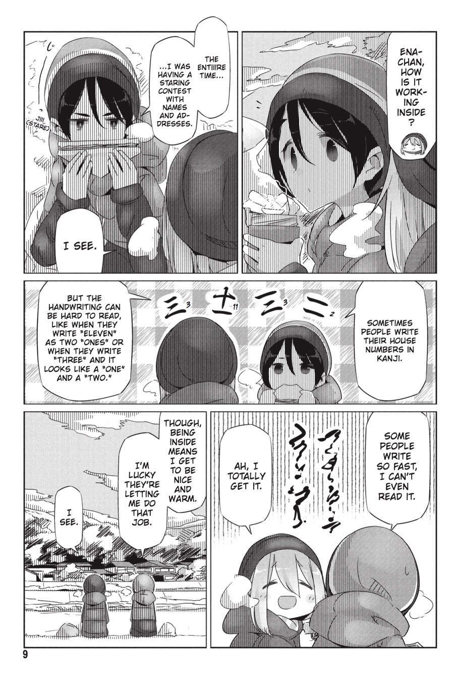 The New Year is right around the corner, and there's a big question on all the girls' minds: Where should each of them go to see the first sunrise of the year? Whether it's by the ocean or in view of Mount Fuji, there's no wrong answer-and it's a great excuse for more camping! A freak snowstorm could derail Rin's plans, but a little bad weather might just create the perfect opportunity for more relaxing, exploring, and (of course) eating!