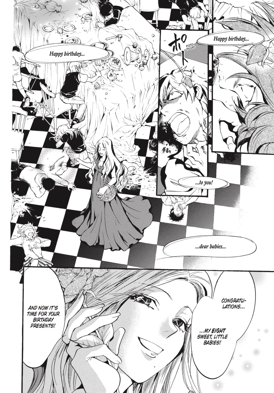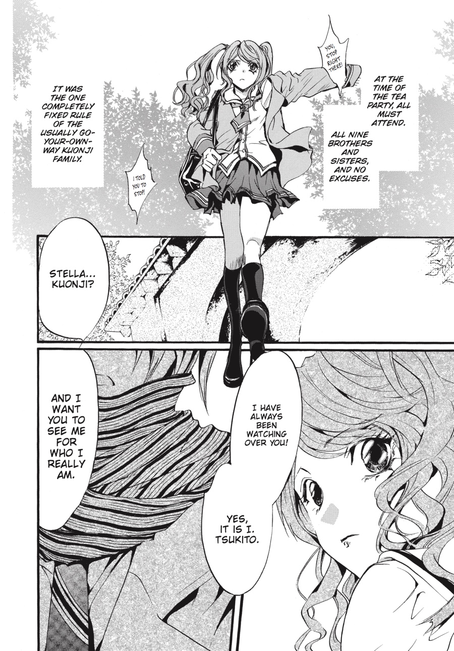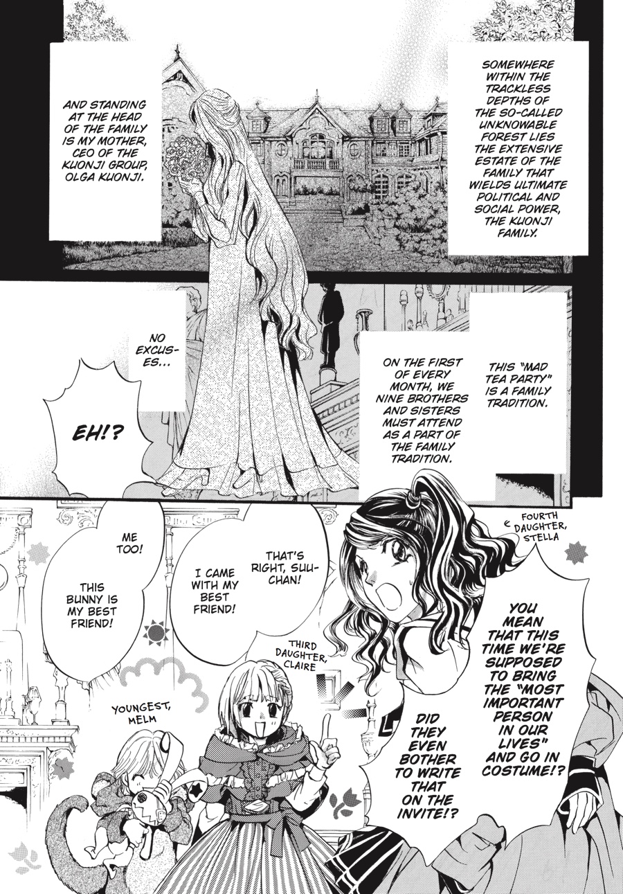 Now! Let the "Mad Tea Party" begin! The Kuonji clan, owner of one of the world's top conglomerates, has a tradition: Once a month, family members attend a "Mad Tea Party." But at the latest gathering, the nine Kuonji siblings in attendance are shocked to hear a pronouncement issue from the lips of their mother, Olga- "I'd like you children to now fight one another to the death!"As chaos erupts, Stella, the fourth daughter, loses all reason, and suddenly a whole new Stella, complete with blonde hair and blue dress, comes out to play-!!