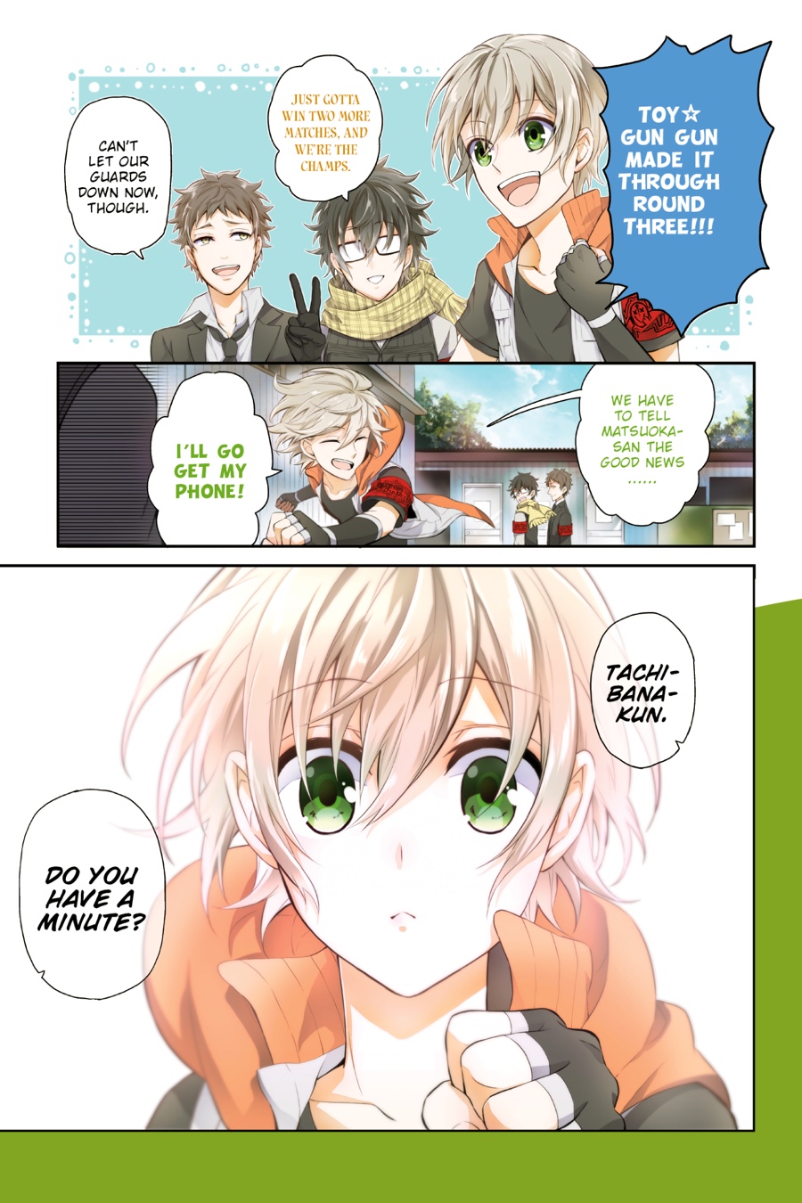 The TGC is a far cry from easy, but Toy Gun Gun and Star White are squeaking through close matches! During a break in the fierce fighting, Fujimoto and Ichi reminisce about their fateful encounters with Midori. These seemingly preordained meetings took place during difficult times in their lives, whether in survival games or personally...but just how life-changing were these events?