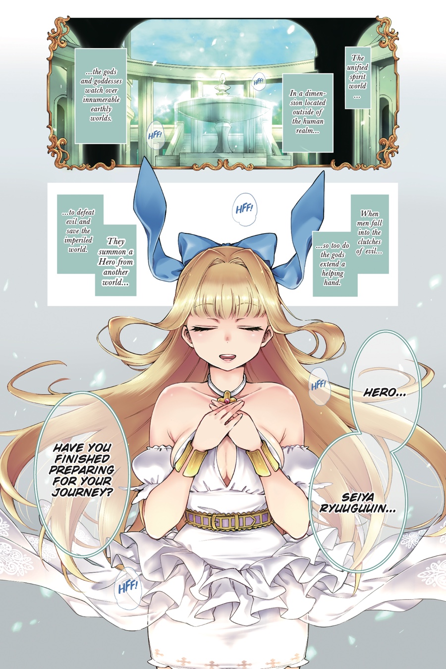 Can a neurotically overprepared hero and an underachieving goddess save a parallel world together?! When the inexperienced goddess Ristarte is tasked with the daunting mission of saving the S-ranked world Gaeabrande, she thinks that summoning Seiya Ryuuguuin, a Japanese teenager who has utterly broken stats as a Hero, will finally turn her luck around. Seiya’s abilities (and good looks) are all she has ever dreamed of, but she soon wishes she had read the fine print about his ”overly cautious” personality...