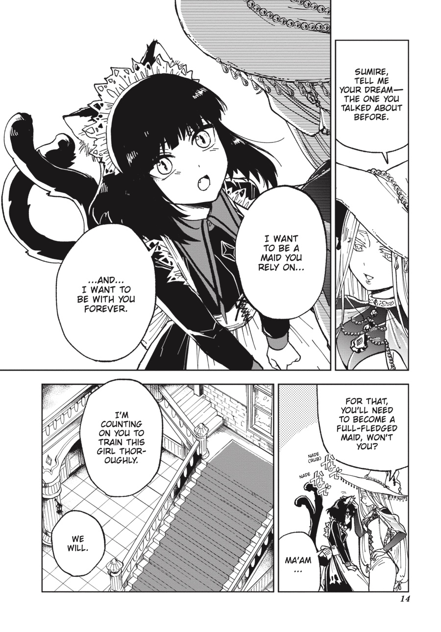 Once upon a time, there was an elderly woman. She lived alone, save for a darling black cat that she doted on. After many years, the cat finally gained the ability to transform-“Look, mistress! I’ve turned into a human. Now I can repay your kindness!” Alas, the kitty was just a little too late to help her owner. Legend has it she now wanders the Demon Realm, looking for a place where she belongs…And so begins the tale of Sumire the nekomata and her splendid work as a monster maid!